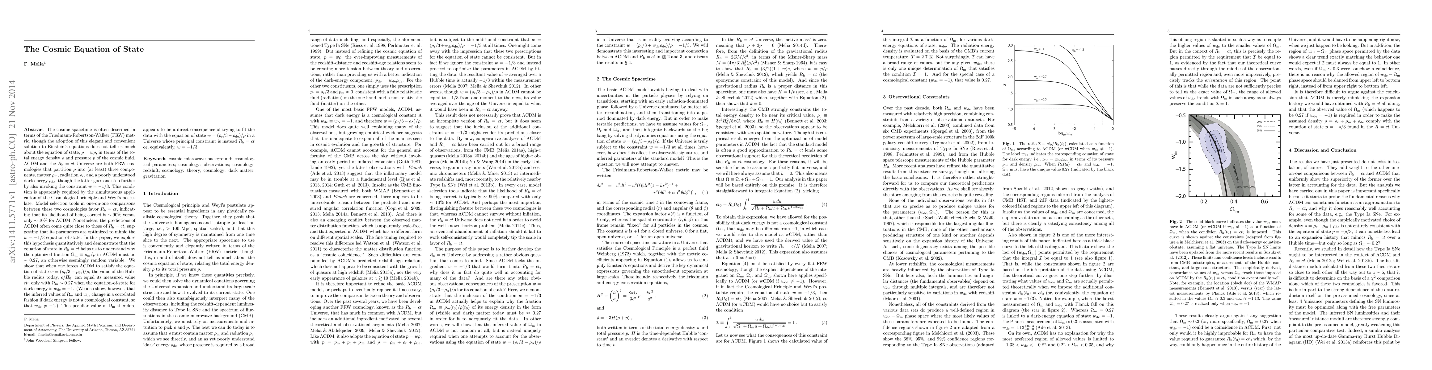 The cosmic spacetime is often described in terms of the FRW metric, though the adoption of this elegant and convenient solution to Einstein's equations does not tell us much about the equation of state, p=w rho, in terms of the total energy density rho and pressure p of the cosmic fluid. LCDM and the R_h=ct Universe are both FRW cosmologies that partition rho into (at least) three components, matter rho_m, radiation rho_r, and a poorly understood dark energy rho_de, though the latter goes one step further by also invoking the constraint w=-1/3. This condition is required by the simultaneous application of the Cosmological principle and Weyl's postulate. Model selection tools in one-on-one comparisons favor R_h=ct with a likelihood of ~90% versus only ~10% for LCDM. Nonetheless, the predictions of LCDM often come quite close to those of R_h=ct, suggesting that its parameters are optimized to mimic the w=-1/3 equation of state. In this paper, we demonstrate that the equation of state in R_h=ct helps us to understand why the optimized fraction Omega_m=rho_m/rho in LCDM must be ~0.27, an otherwise seemingly random variable. We show that when one forces LCDM to satisfy the equation of state w=(rho_r/3-rho_de)/rho, the value of the Hubble radius today, c/H_0, can equal its measured value ct_0 only with Omega_m~0.27 when the equation of state for dark energy is w_de=-1. This peculiar value of Omega_m therefore appears to be a direct consequence of trying to fit the data with the equation of state w=(rho_r/3-rho_de)/rho in a Universe whose principal constraint is instead R_h=ct or, equivalently, w=-1/3.