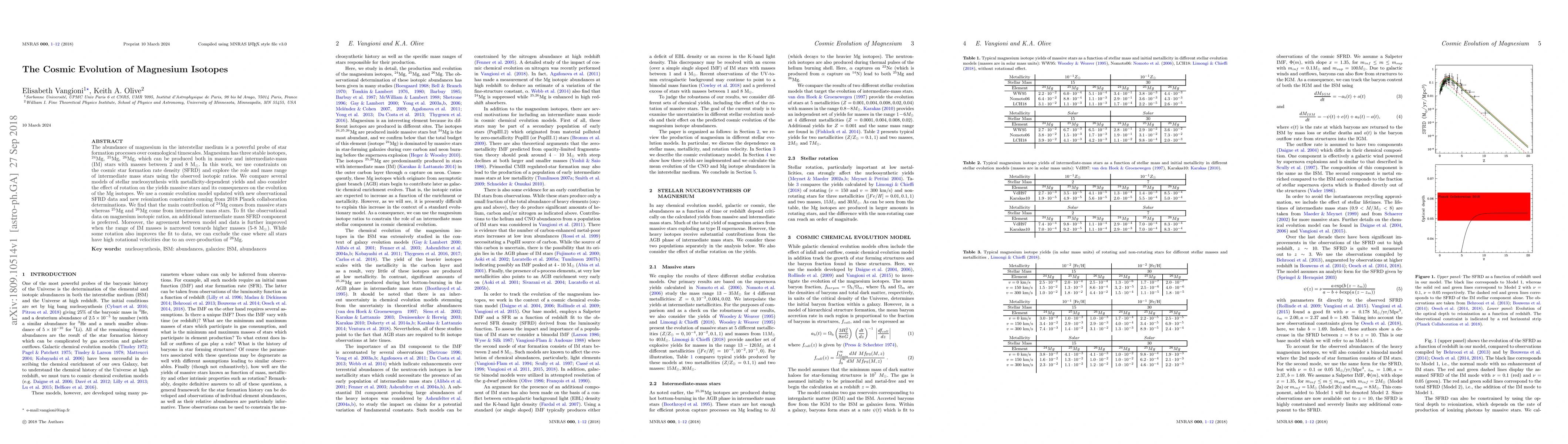This study investigates the cosmic evolution of magnesium isotopes, finding that 24Mg mainly originates from massive stars, while 25Mg and 26Mg are produced by intermediate-mass stars. The best fit to observational data suggests an additional intermediate mass star component and a narrower mass range (5-8 M_\odot) for these stars, with some rotation effects improving the model fit.