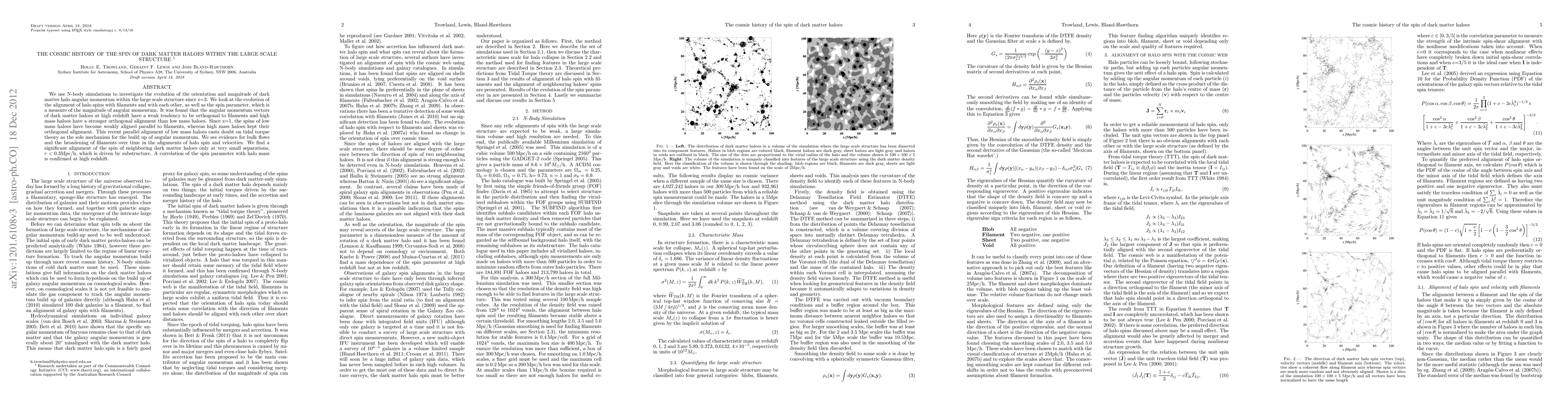 This study uses N-body simulations to track the evolution of dark matter halo angular momentum since z=3, revealing that high mass haloes maintain orthogonal alignment with filaments while low mass haloes recently align parallel to them, challenging tidal torque theory. The spin parameter correlates with halo mass at high redshift.