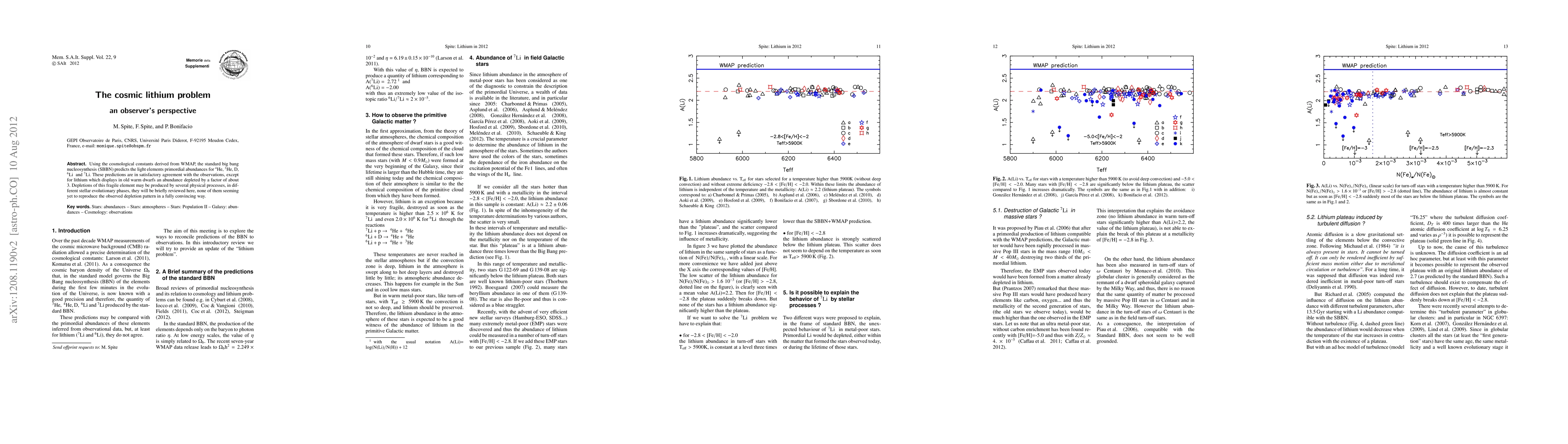 Using the cosmological constants derived from WMAP, the standard big bang nucleosynthesis (SBBN) predicts the light elements primordial abundances for 4He, 3He, D, 6Li and 7Li. These predictions are in satisfactory agreement with the observations, except for lithium which displays in old warm dwarfs an abundance depleted by a factor of about 3. Depletions of this fragile element may be produced by several physical processes, in different stellar evolutionary phases, they will be briefly reviewed here, none of them seeming yet to reproduce the observed depletion pattern in a fully convincing way.