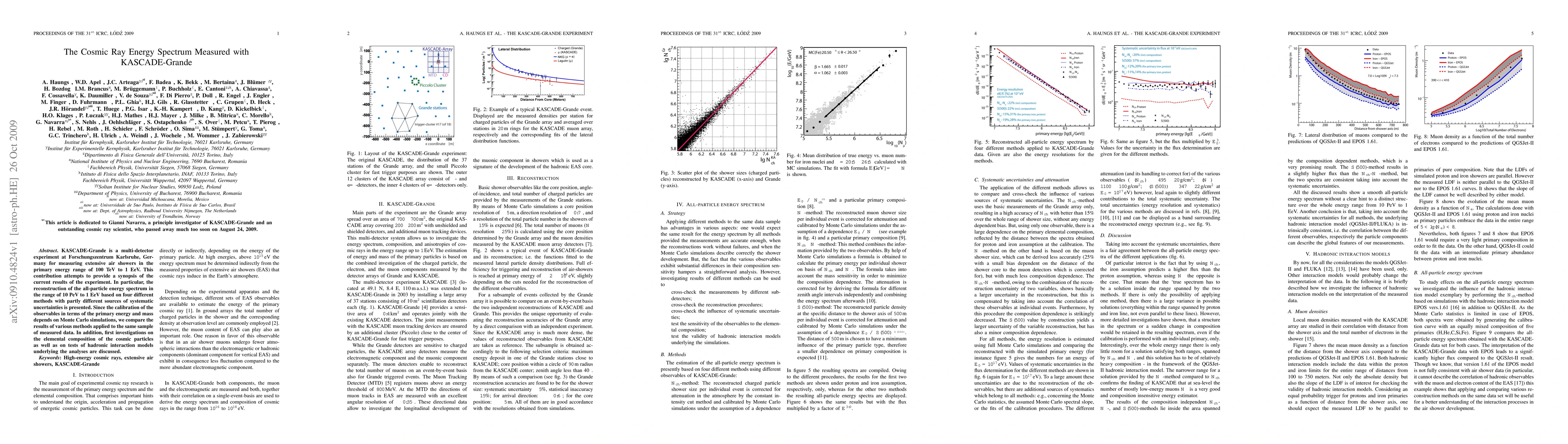 A research paper presents results from the KASCADE-Grande experiment on measuring cosmic ray energy spectra in the 10 PeV to 1 EeV range using four different methods. The findings focus on reconstructing the energy spectrum and investigating elemental composition and hadronic interaction models.