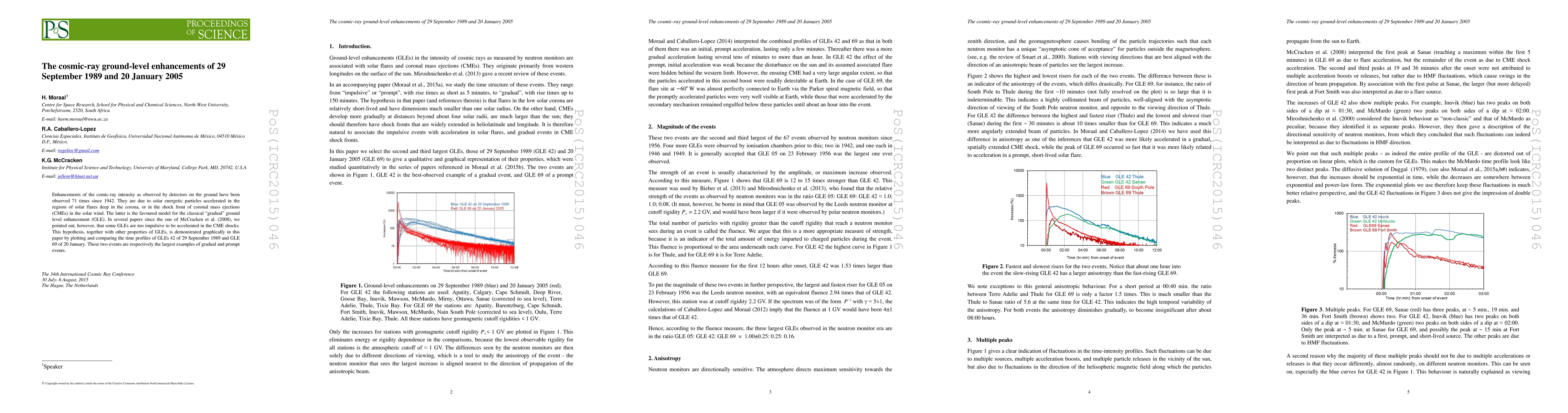 Enhancements of the comic-ray intensity as observed by detectors on the ground have been observed 71 times since 1942. They are due to solar energetic particles accelerated in the regions of solar flares deep in the corona, or in the shock front of coronal mass ejections (CMEs) in the solar wind. The latter is the favoured model for the classical gradual ground level enhancement (GLE). In several papers since the one of McCracken et al. (2008), we pointed out, however, that some GLEs are too impulsive to be accelerated in the CME shocks. This hypothesis, together with other properties of GLEs, is demonstrated graphically in this paper by plotting and comparing the time profiles of GLEs 42 of 29 September 1989 and GLE 69 of 20 January. These two events are respectively the largest examples of gradual and prompt events.