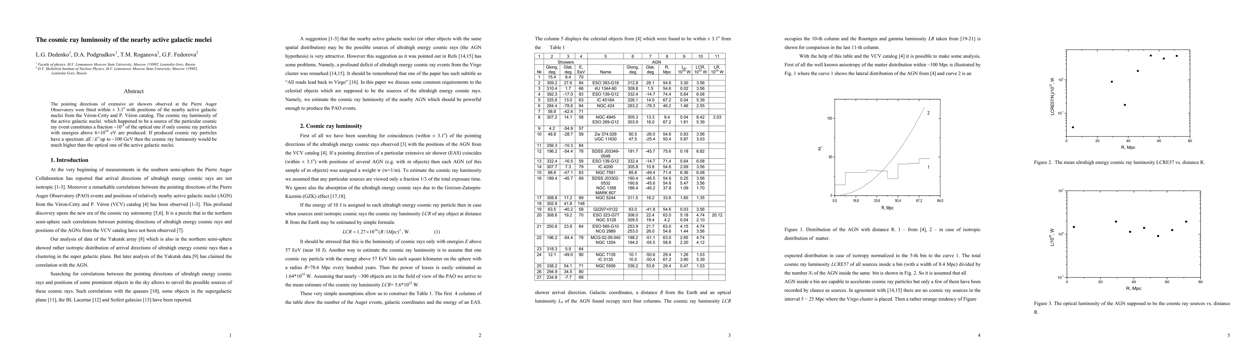 The pointing directions of extensive air showers observed at the Pierre Auger Observatory were fitted within 3.1 degree with positions of the nearby active galactic nuclei from the Veron-Cetty and P. Veron catalog. The cosmic ray luminosity of the active galactic nuclei which happened to be a source of the particular cosmic ray event constitutes a fraction ~0.0001 of the optical one if only cosmic ray particles with energies above 60 EeV are produced. If produced cosmic ray particles have a spectrum dE/E^3 up to ~100 GeV then the cosmic ray luminosity would be much higher than the optical one of the active galactic nuclei.