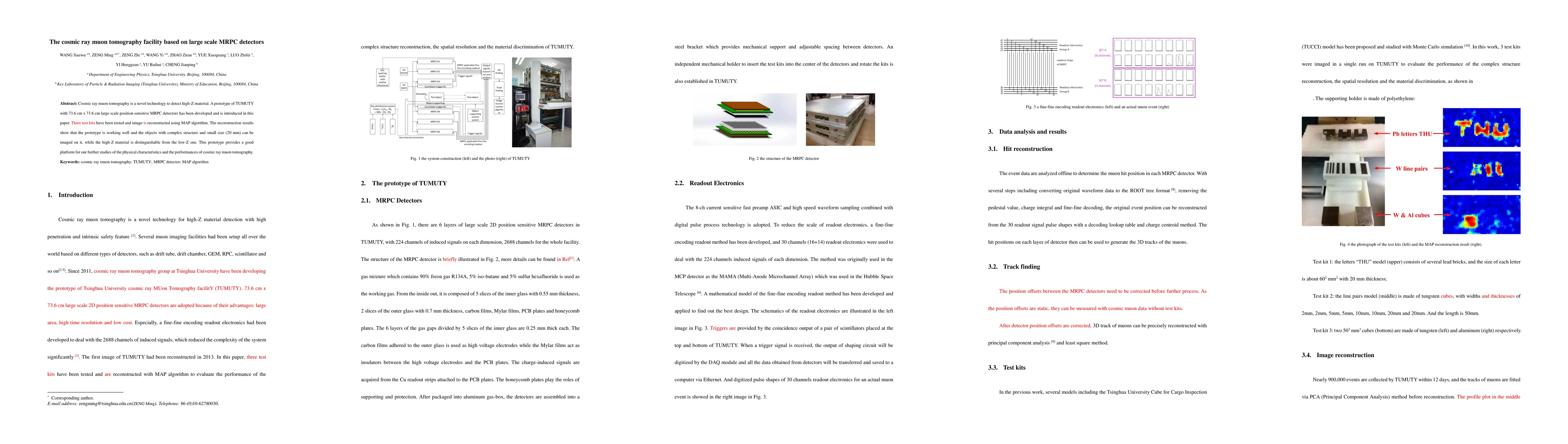 This paper introduces a prototype of cosmic ray muon tomography using large scale MRPC detectors, successfully imaging objects with complex structures and distinguishing high-Z materials. The prototype's performance is validated through tests and reconstruction using the MAP algorithm.