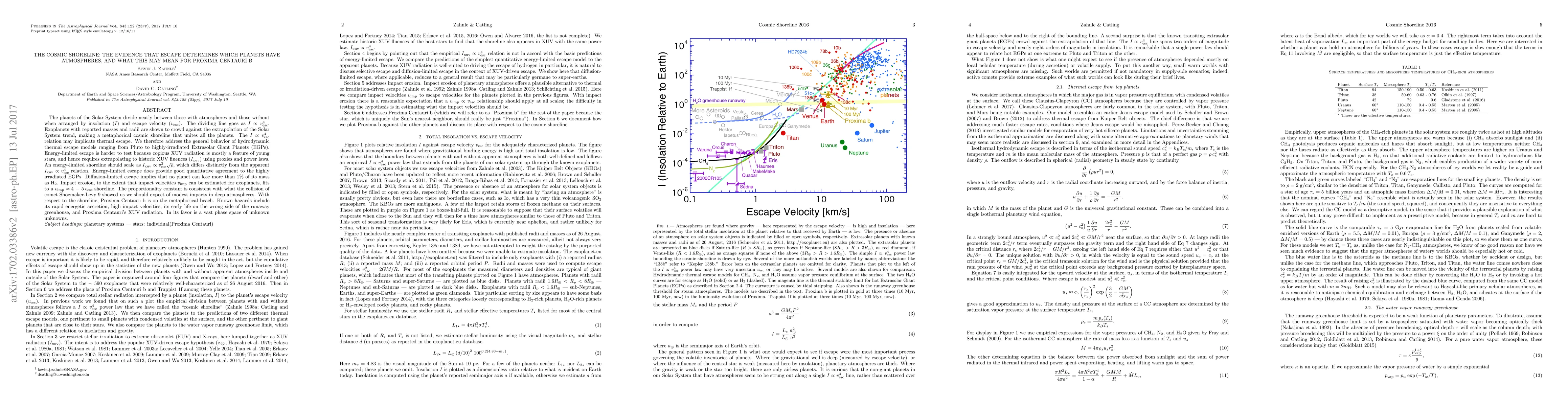 The paper explores how escape velocity and insolation determine planetary atmospheres, proposing a "cosmic shoreline" that separates planets with and without atmospheres. It examines thermal and energy-limited escape mechanisms, and applies these findings to Proxima Centauri b, highlighting its potential atmospheric loss due to various hazards.