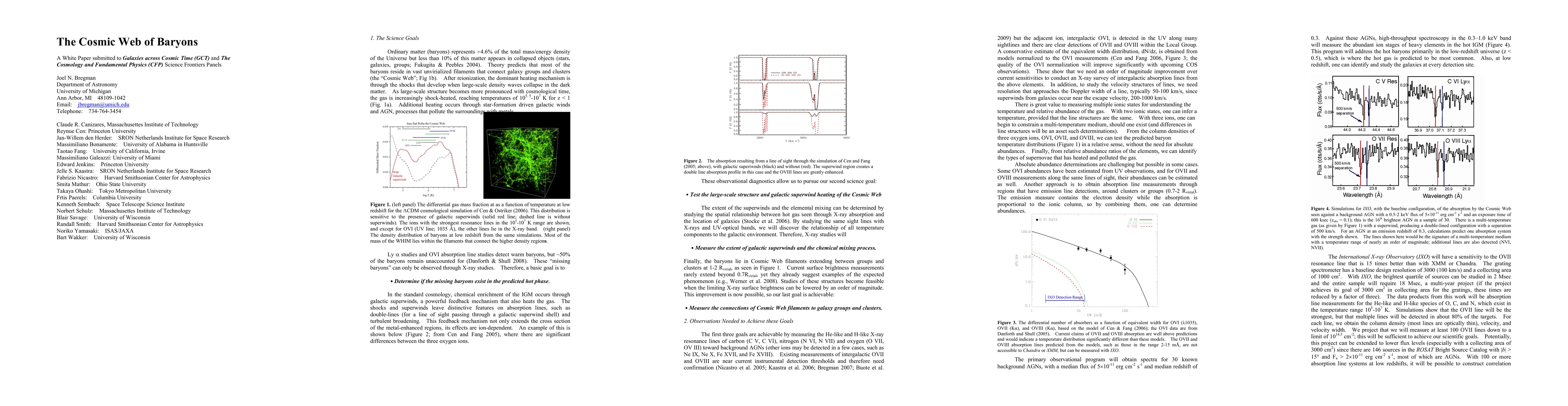 Only about 10% of the baryons in the universe lie in galaxies as stars or cold gas, with the remainder predicted to exist as a dilute gaseous filamentary network known as the Cosmic Web. Some of this gas is detected through UV absorption line studies, but half of the gas remains undetected. Growth of structure simulations suggest that these "missing" baryons were shock heated in unvirialized cosmic filaments to temperatures of 10^5.5-10^7 K, and that the gas is chemically enriched by galactic superwinds. Most of the gas in this temperature regime can be detected only by X-ray observations through absorption and emission from the He-like and H-line ions of C, N, and O. This white paper shows that an X-ray telescope such as IXO can test the most central predictions of the Cosmic Web: the distribution of gas mass with temperature; the dynamics of the gas and its relationship to nearby galaxies; and the topology of the Cosmic Web material.
