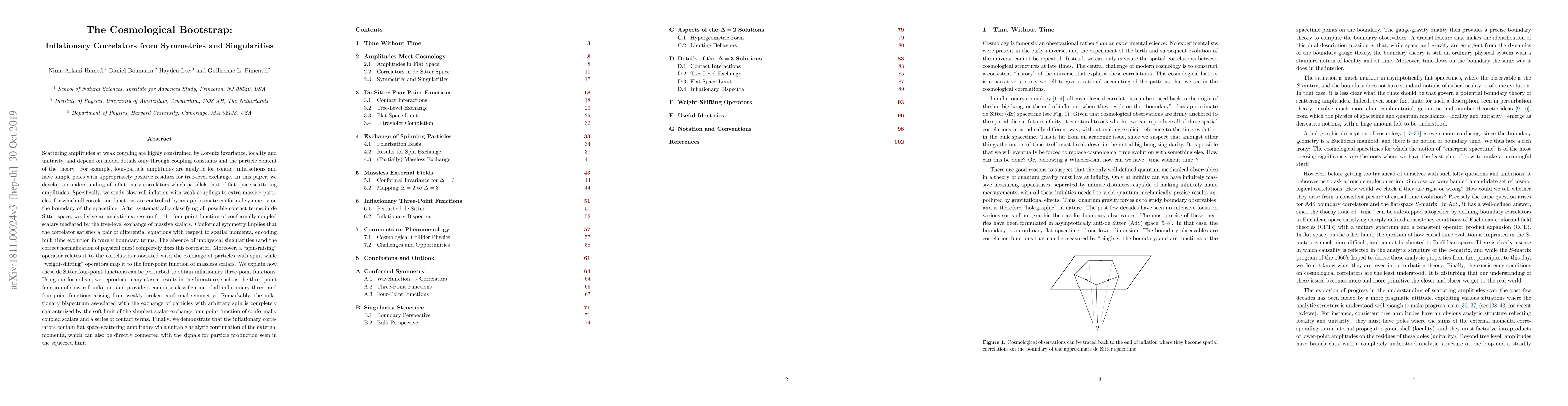 Scattering amplitudes at weak coupling are highly constrained by Lorentz invariance, locality and unitarity, and depend on model details only through coupling constants and particle content. In this paper, we develop an understanding of inflationary correlators which parallels that of flat-space scattering amplitudes. Specifically, we study slow-roll inflation with weak couplings to extra massive particles, for which all correlators are controlled by an approximate conformal symmetry on the boundary of the spacetime. After classifying all possible contact terms in de Sitter space, we derive an analytic expression for the four-point function of conformally coupled scalars mediated by the tree-level exchange of massive scalars. Conformal symmetry implies that the correlator satisfies a pair of differential equations with respect to spatial momenta, encoding bulk time evolution in purely boundary terms. The absence of unphysical singularities completely fixes this correlator. A spin-raising operator relates it to the correlators associated with the exchange of particles with spin, while weight-shifting operators map it to the four-point function of massless scalars. We explain how these de Sitter four-point functions can be perturbed to obtain inflationary three-point functions. We reproduce many classic results in the literature and provide a complete classification of all inflationary three- and four-point functions arising from weakly broken conformal symmetry. The inflationary bispectrum associated with the exchange of particles with arbitrary spin is completely characterized by the soft limit of the simplest scalar-exchange four-point function of conformally coupled scalars and a series of contact terms. Finally, we demonstrate that the inflationary correlators contain flat-space scattering amplitudes via a suitable analytic continuation of the external momenta.