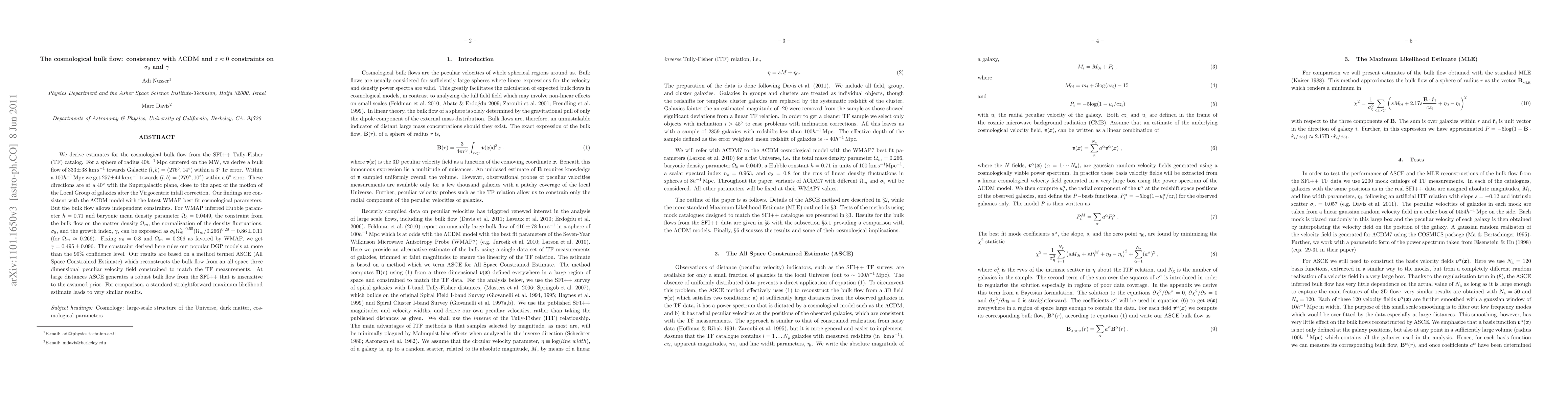 Researchers estimate a bulk flow of 333 km/s towards Galactic coordinates (276°,14°) from the SFI++ Tully-Fisher catalog, consistent with the λCDM model, but also providing independent constraints on cosmological parameters like θ_8 and ς.