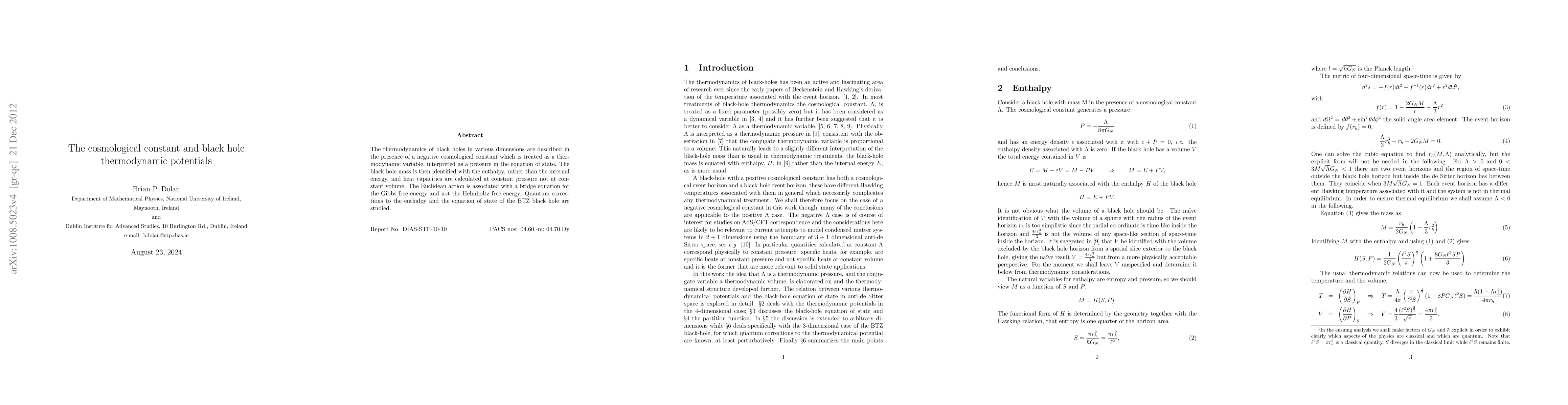 This paper explores the thermodynamics of black holes with a negative cosmological constant, treating it as a thermodynamic pressure. It identifies black hole mass as enthalpy, calculating heat capacities at constant pressure, and studies quantum corrections to the BTZ black hole's enthalpy and equation of state.
