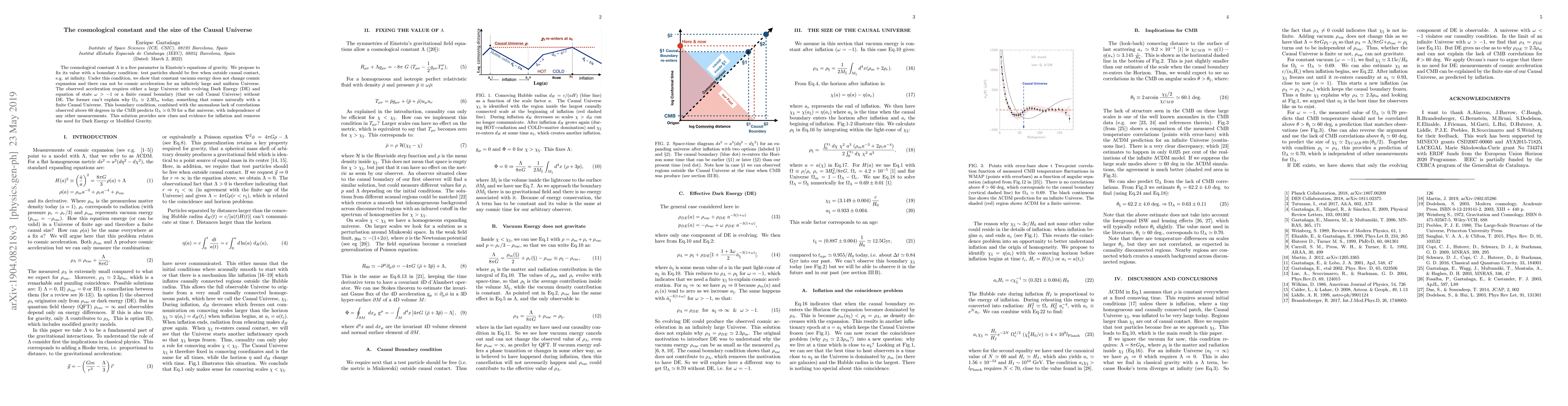 Researchers propose a boundary condition to fix the cosmological constant, suggesting that cosmic acceleration may only occur in a finite universe with Dark Energy or a Causal Universe without it. The solution provides new evidence for inflation and removes the need for Dark Energy.