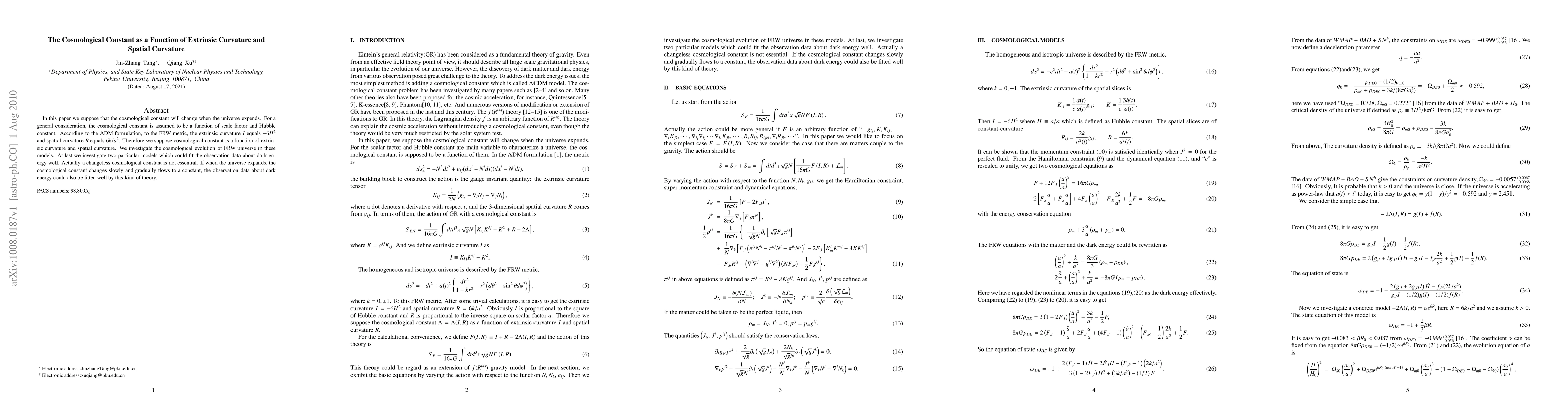 This paper explores the cosmological constant as a function of extrinsic curvature and spatial curvature, proposing it varies with the universe's expansion. It investigates FRW models where the cosmological constant depends on the Hubble constant and scale factor, fitting observational data on dark energy.