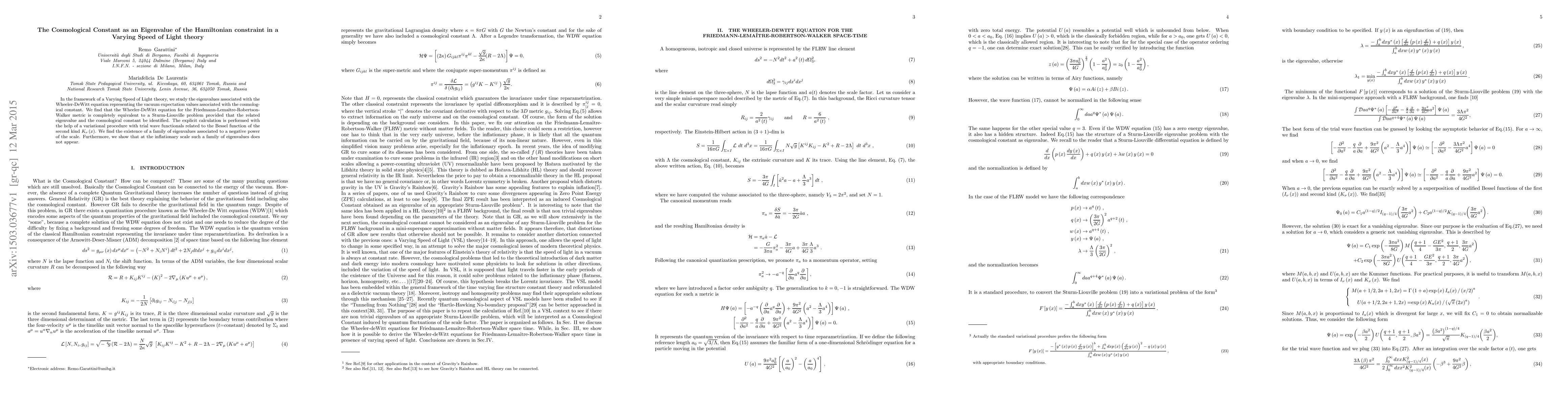 In the framework of a Varying Speed of Light theory, we study the eigenvalues associated with the Wheeler-DeWitt equation representing the vacuum expectation values associated with the cosmological constant. We find that the Wheeler-DeWitt equation for the Friedmann-Lema\^{\i}tre-Robertson-Walker metric is completely equivalent to a Sturm-Liouville problem provided that the related eigenvalue and the cosmological constant be identified. The explicit calculation is performed with the help of a variational procedure with trial wave functionals related to the Bessel function of the second kind $K_{\nu }\left( x\right) $. We find the existence of a family of eigenvalues associated to a negative power of the scale. Furthermore, we show that at the inflationary scale such a family of eigenvalues does not appear.