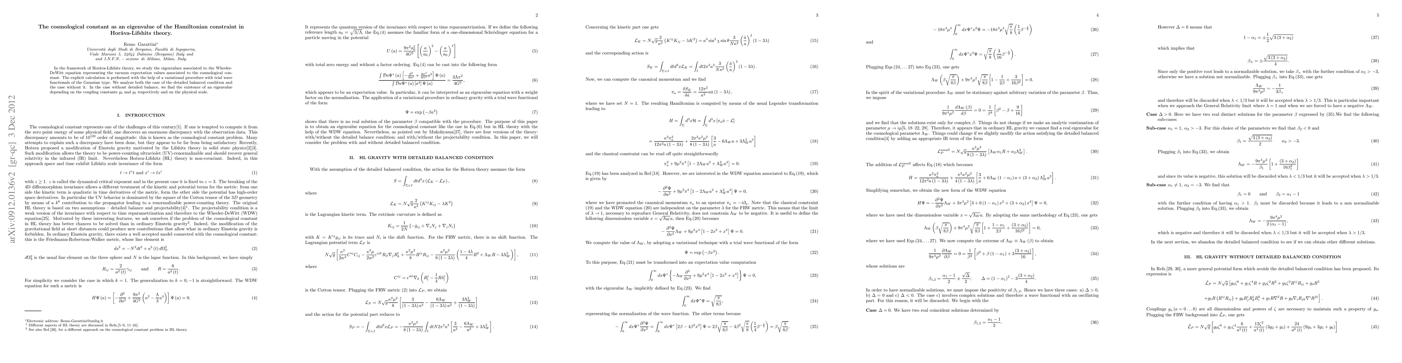 In the framework of Horava-Lifshitz theory, we study the eigenvalues associated with the Wheeler-DeWitt equation representing the vacuum expectation values associated with the cosmological constant. The explicit calculation is performed with the help of a variational procedure with trial wave functionals of the Gaussian type. We analyze both the case with the detailed balanced condition and the case without it. In the case without the detailed balance, we find the existence of an eigenvalue depending on the set of coupling constants (g2,g3) and (g4,g5,g6), respectively, and on the physical scale.