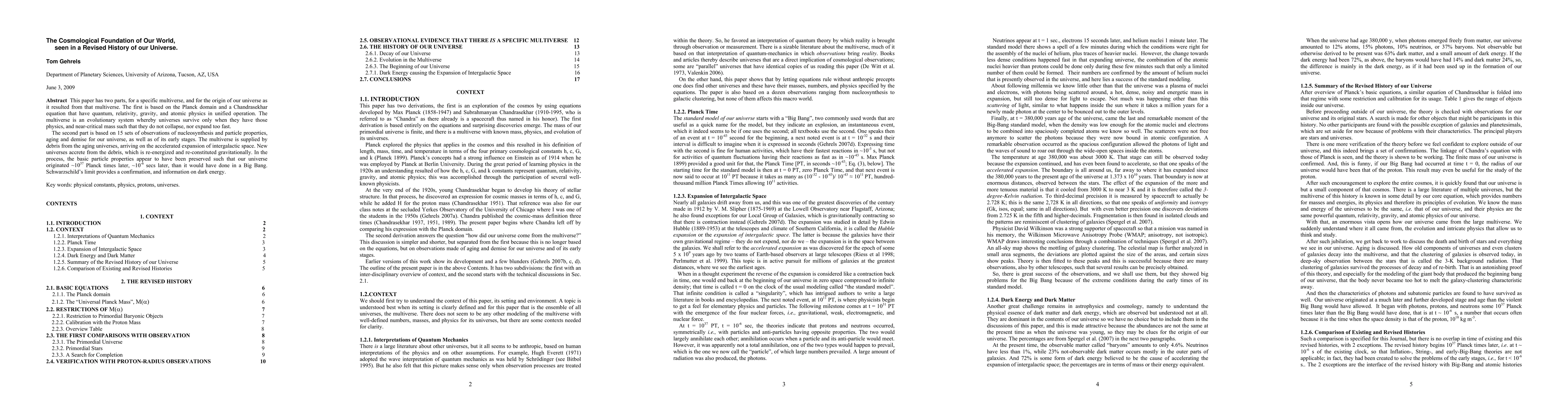 This paper explores the cosmological foundation of our universe through a revised multiverse theory, integrating quantum, relativity, gravity, and atomic physics. It posits that our universe originated from a multiverse where universes survive based on near-critical mass, and new universes form from debris of aging universes, preserving basic particle properties.