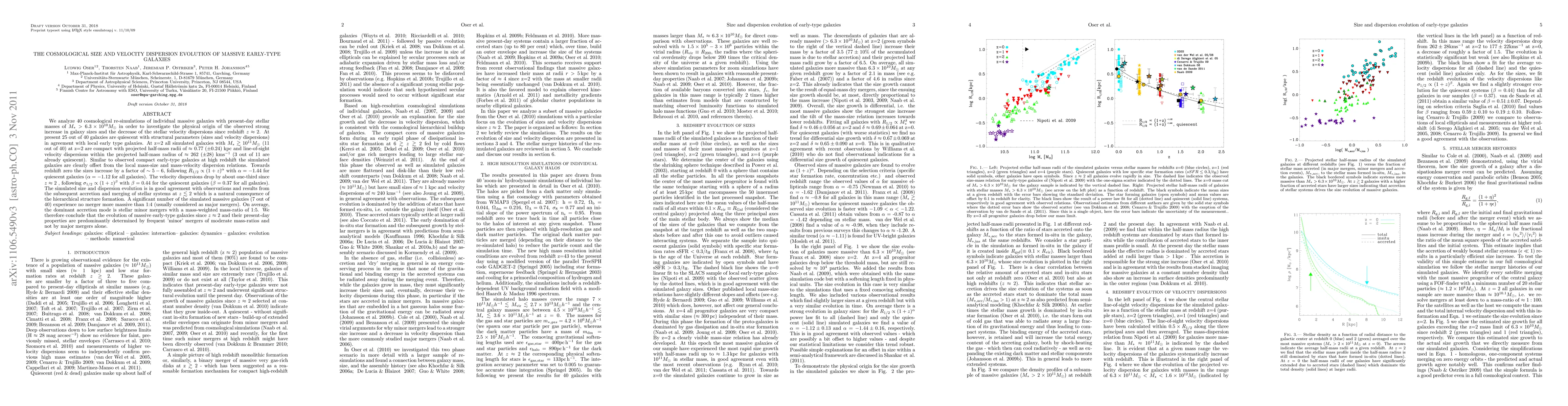 This study uses cosmological simulations to explore the evolution of massive early-type galaxies, finding that their sizes increase significantly and velocity dispersions decrease since $z \approx 2$, driven by minor mergers and accretion, aligning well with observational data.
