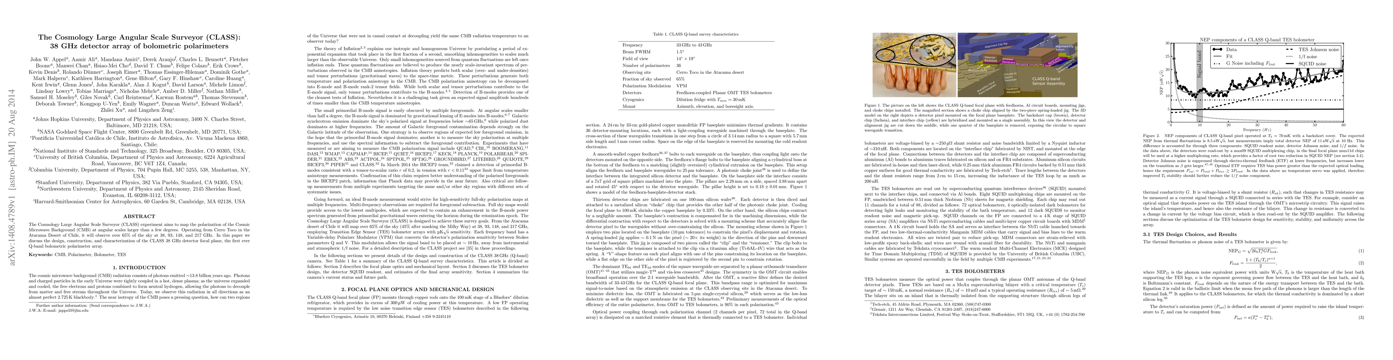 The Cosmology Large Angular Scale Surveyor (CLASS) experiment aims to map the polarization of the Cosmic Microwave Background (CMB) at large angular scales. This paper details the design and characterization of the CLASS 38 GHz focal plane, featuring the first Q-band bolometric polarimeter array.