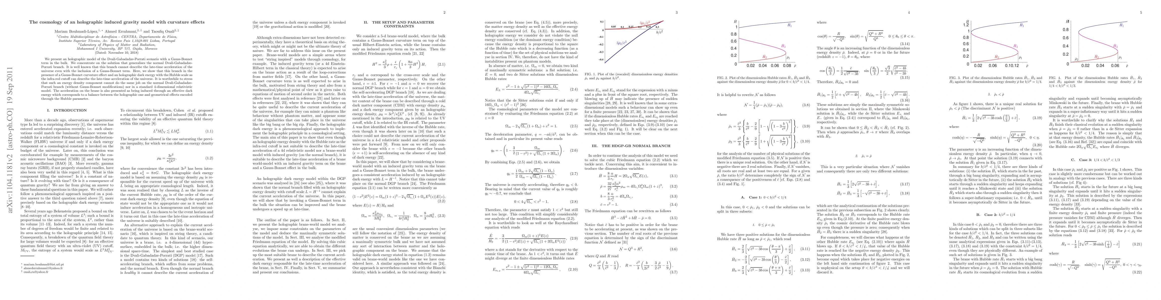 This paper explores an holographic model of the Dvali-Gabadadze-Porrati scenario with a Gauss-Bonnet term, demonstrating that it can describe the universe's late-time acceleration through an effective dark energy balance, unlike the standard Dvali-Gabadadze-Porrati branch.