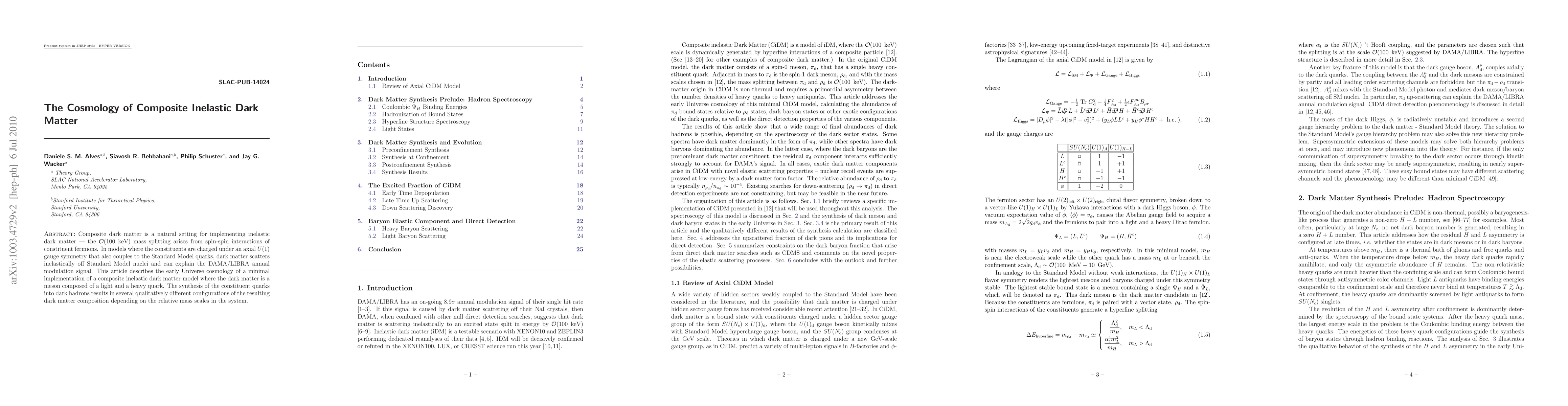 Composite dark matter is a natural setting for implementing inelastic dark matter - the O(100 keV) mass splitting arises from spin-spin interactions of constituent fermions. In models where the constituents are charged under an axial U(1) gauge symmetry that also couples to the Standard Model quarks, dark matter scatters inelastically off Standard Model nuclei and can explain the DAMA/LIBRA annual modulation signal. This article describes the early Universe cosmology of a minimal implementation of a composite inelastic dark matter model where the dark matter is a meson composed of a light and a heavy quark. The synthesis of the constituent quarks into dark mesons and baryons results in several qualitatively different configurations of the resulting dark matter hadrons depending on the relative mass scales in the system.