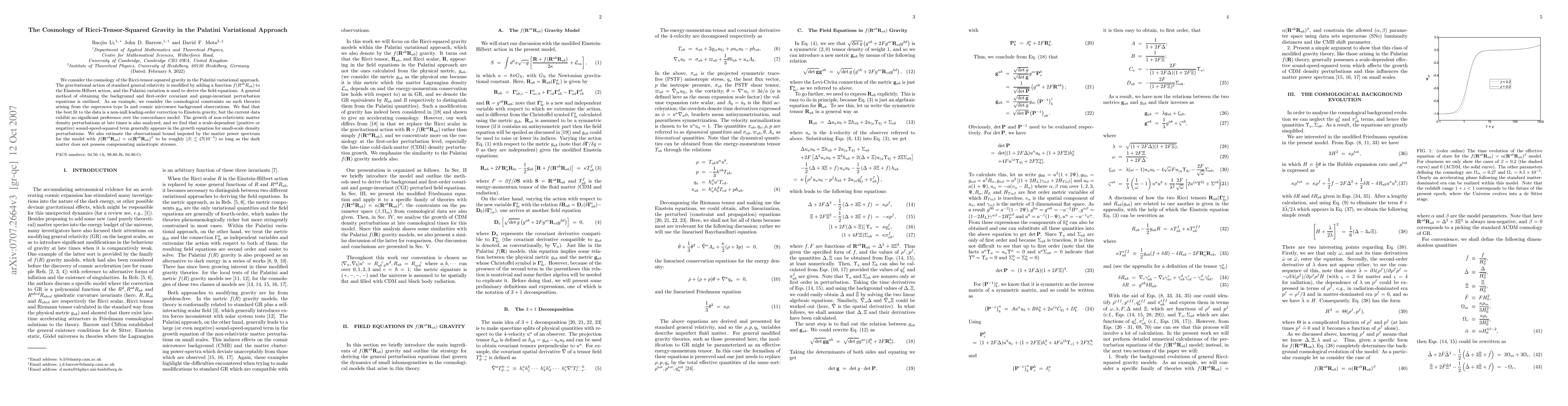 This paper investigates the cosmology of modified gravity theories, specifically Ricci-tensor-squared gravity in the Palatini variational approach, and finds that current data shows no significant preference for these models over standard Einstein gravity.