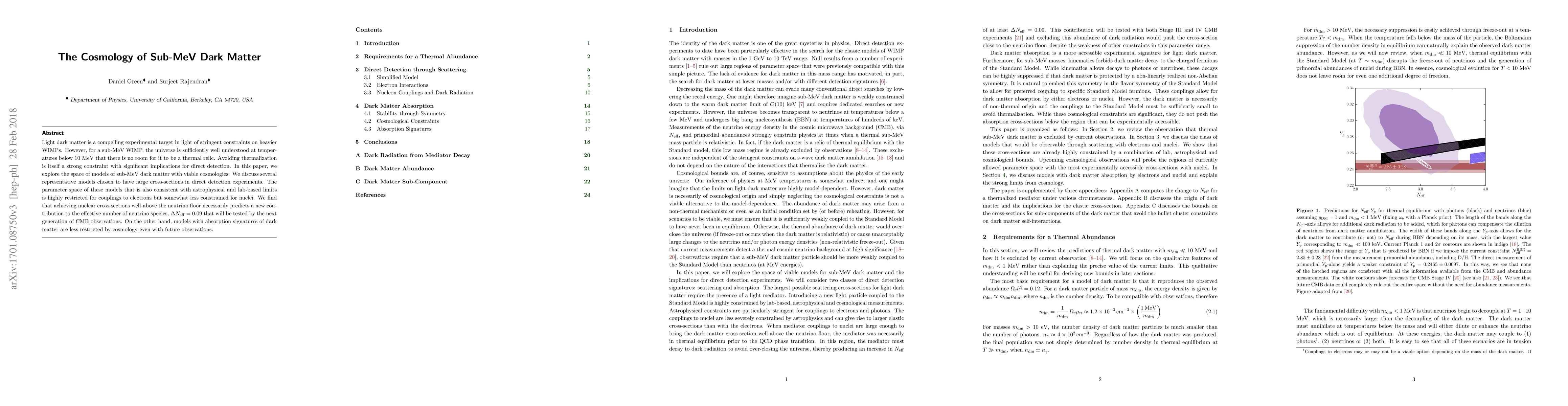 Light dark matter is a compelling experimental target in light of stringent constraints on heavier WIMPs. However, for a sub-MeV WIMP, the universe is sufficiently well understood at temperatures below 10 MeV that there is no room for it to be a thermal relic. Avoiding thermalization is itself a strong constraint with significant implications for direct detection. In this paper, we explore the space of models of sub-MeV dark matter with viable cosmologies. The parameter space of these models that is also consistent with astrophysical and lab-based limits is highly restricted for couplings to electrons but somewhat less constrained for nuclei. We find that achieving nuclear cross-sections well-above the neutrino floor necessarily predicts a new contribution to the effective number of neutrino species, $\Delta N_{\rm eff} = 0.09$ that will be tested by the next generation of CMB observations. On the other hand, models with absorption signatures of dark matter are less restricted by cosmology even with future observations.