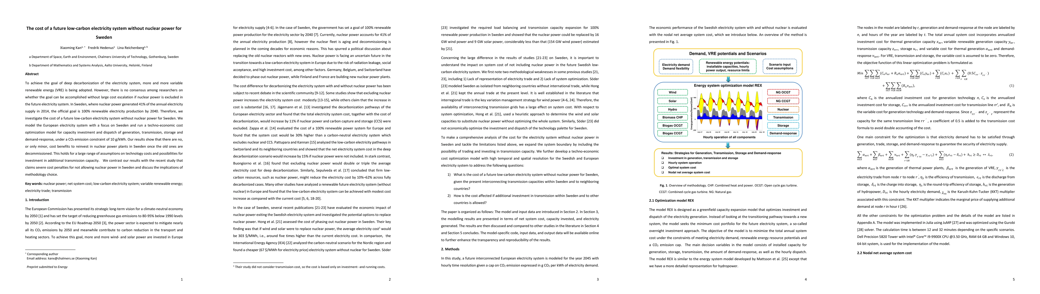 This study investigates the cost implications of achieving 100% renewable electricity in Sweden without nuclear power, finding minimal cost benefits from reinvestment in nuclear plants. It contrasts with another study claiming significant cost penalties, highlighting the importance of methodological choices in such analyses.