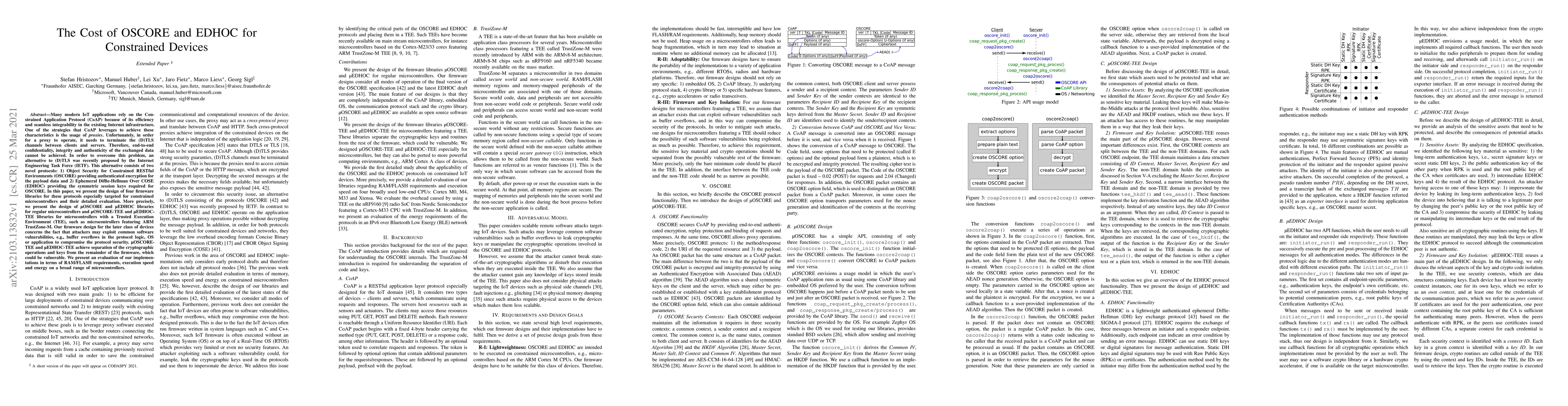 This paper evaluates four firmware libraries designed for OSCORE and EDHOC, aimed at securing CoAP in IoT devices. The libraries, uOSCORE, uEDHOC, uOSCORE-TEE, and uEDHOC-TEE, are tailored for constrained microcontrollers, with the latter two leveraging Trusted Execution Environments to enhance security against software vulnerabilities. The study assesses their RAM/FLASH usage, execution speed, and energy consumption across various microcontrollers.