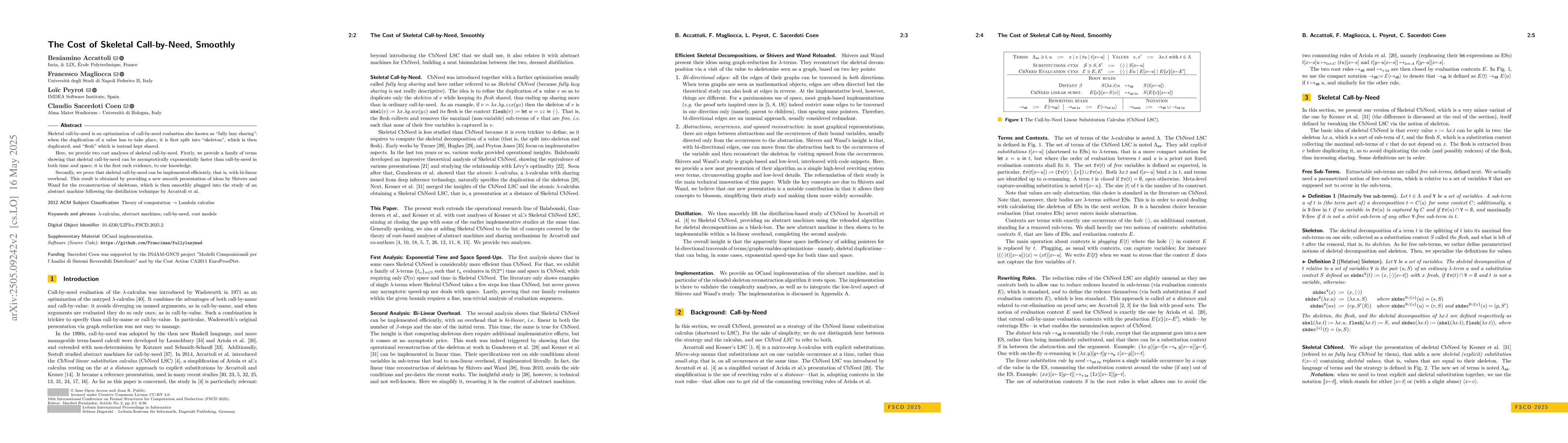 The paper introduces a smooth presentation of skeleton reconstruction ideas and integrates it with an abstract machine study via distillation, leading to an efficient implementation of skeletal call-by-need.