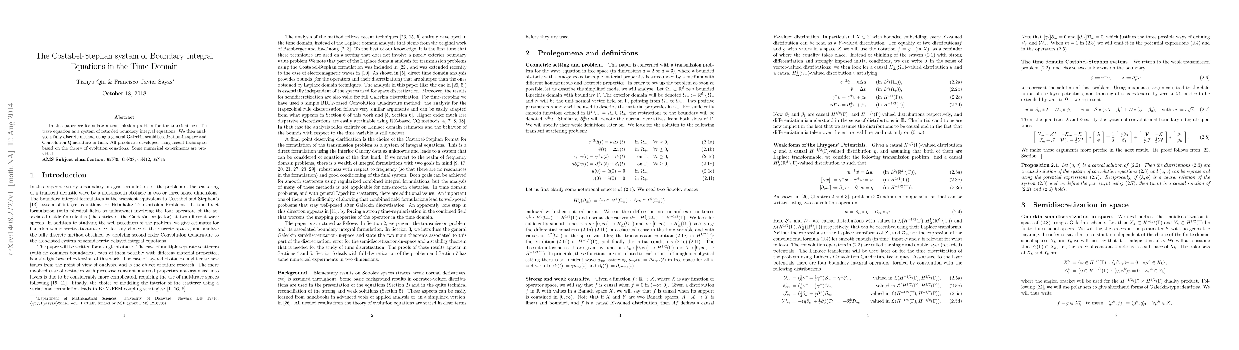 In this paper we formulate a transmission problem for the transient acoustic wave equation as a system of retarded boundary integral equations. We then analyse a fully discrete method using a general Galerkin semidiscretization-in-space and Convolution Quadrature in time. All proofs are developed using recent techniques based on the theory of evolution equations. Some numerical experiments are provided.