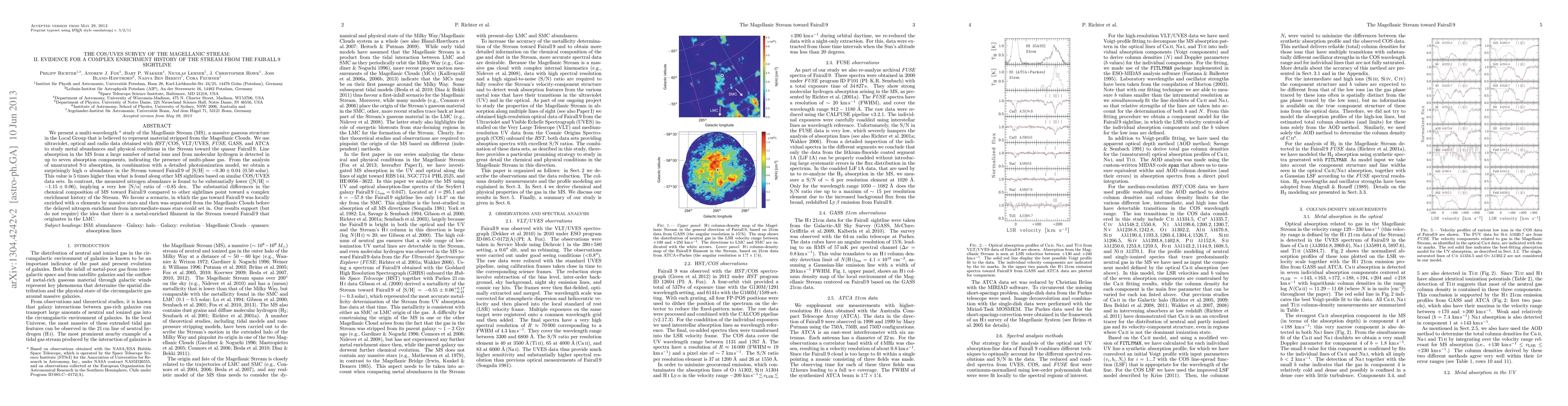 This study reveals a complex enrichment history of the Magellanic Stream via a multi-wavelength analysis toward the quasar Fairall 9, showing high alpha abundance and low nitrogen abundance, suggesting local enrichment by massive stars before separation from the Magellanic Clouds.