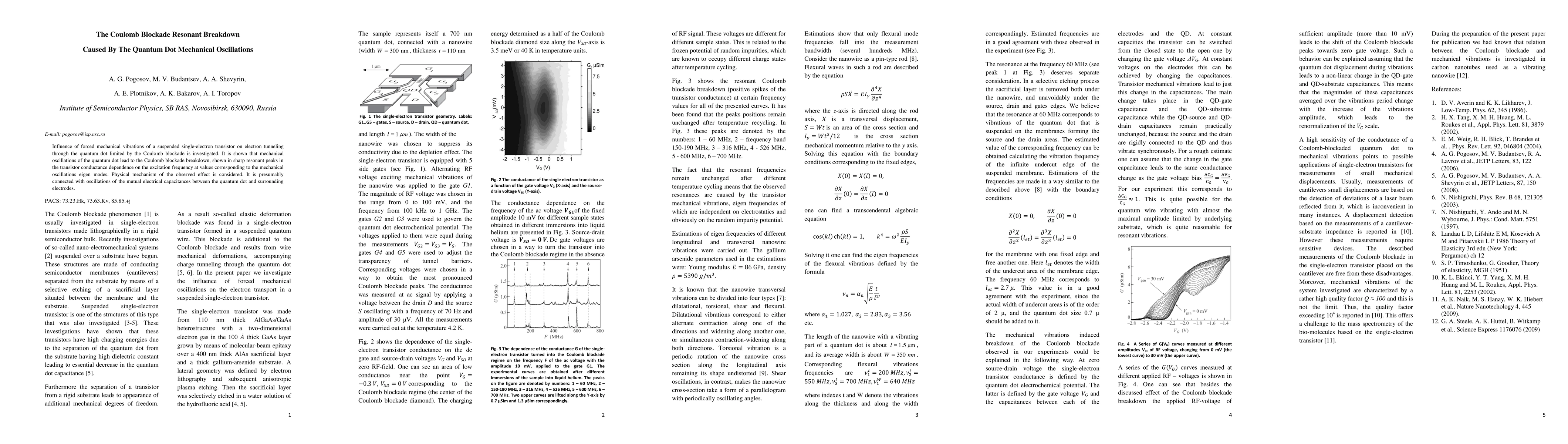 This study investigates how forced mechanical vibrations of a suspended single-electron transistor affect electron tunneling through a quantum dot under Coulomb blockade. Mechanical oscillations of the quantum dot cause the Coulomb blockade to break down, resulting in sharp resonant peaks in the transistor's conductance at frequencies corresponding to the mechanical oscillations' eigen modes, likely due to changes in mutual electrical capacitances.