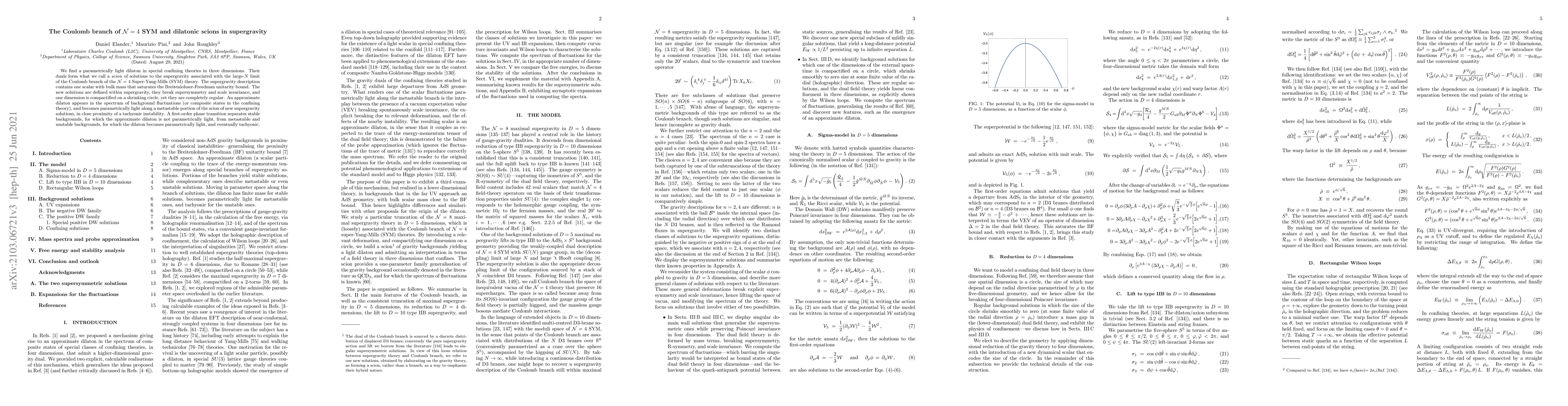 We find a parametrically light dilaton in special confining theories in three dimensions. Their duals form what we call a scion of solutions to the supergravity associated with the large-N limit of the Coulomb branch of the N=4 Super-Yang-Mills (SYM) theory. The supergravity description contains one scalar with bulk mass that saturates the Breitenlohner-Freedman unitarity bound. The new solutions are defined within supergravity, they break supersymmetry and scale invariance, and one dimension is compactified on a shrinking circle, yet they are completely regular. An approximate dilaton appears in the spectrum of background fluctuations (or composite states in the confining theory), and becomes parametrically light along a metastable portion of the scion of new supergravity solutions, in close proximity of a tachyonic instability. A first-order phase transition separates stable backgrounds, for which the approximate dilaton is not parametrically light, from metastable and unstable backgrounds, for which the dilaton becomes parametrically light, and eventually tachyonic.