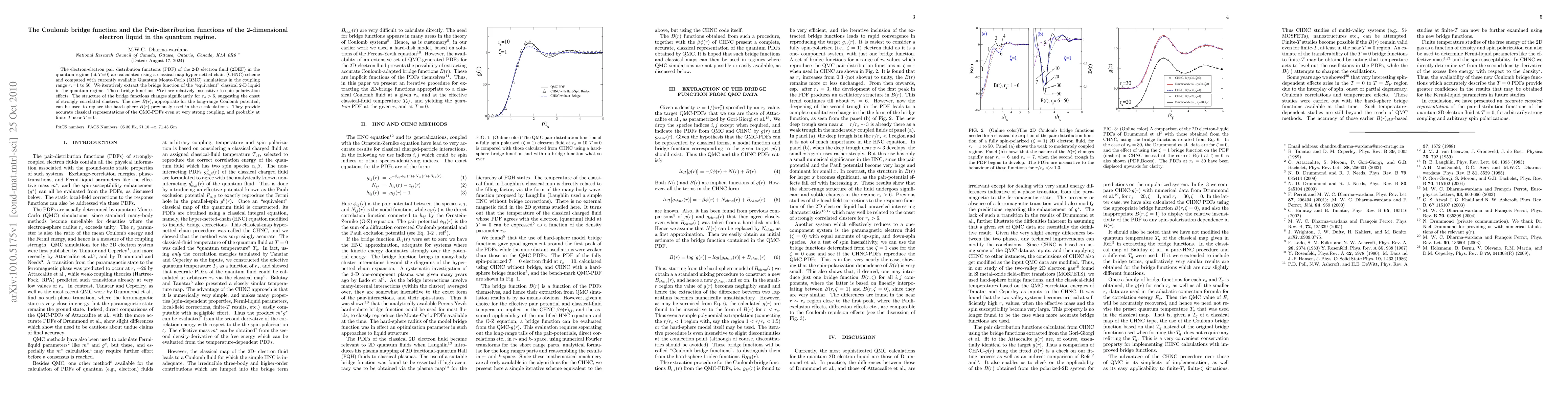 The electron-electron pair distribution functions (PDF) of the 2-D electron fluid (2DEF) in the quantum regime (at T=0) are calculated using a classical-map-hyper-netted-chain (CHNC) scheme and compared with currently available Quantum Monte-Carlo (QMC) simulations in the coupling range r_s=1 to 50. We iteratively extract the bridge function of the "equivalent" classical 2-D liquid in the quantum regime. These bridge functions B(r) are relatively insensitive to spin-polarization effects. The structure of the bridge functions changes significantly for r_s>6, suggesting the onset of strongly correlated clusters. The new B(r), appropriate for the long-range Coulomb potential, can be used to replace the hard-sphere B(r) previously used in these calculations. They provide accurate classical representations of the QMC-PDFs even at very strong coupling, and probably at finite-T near T=0.
