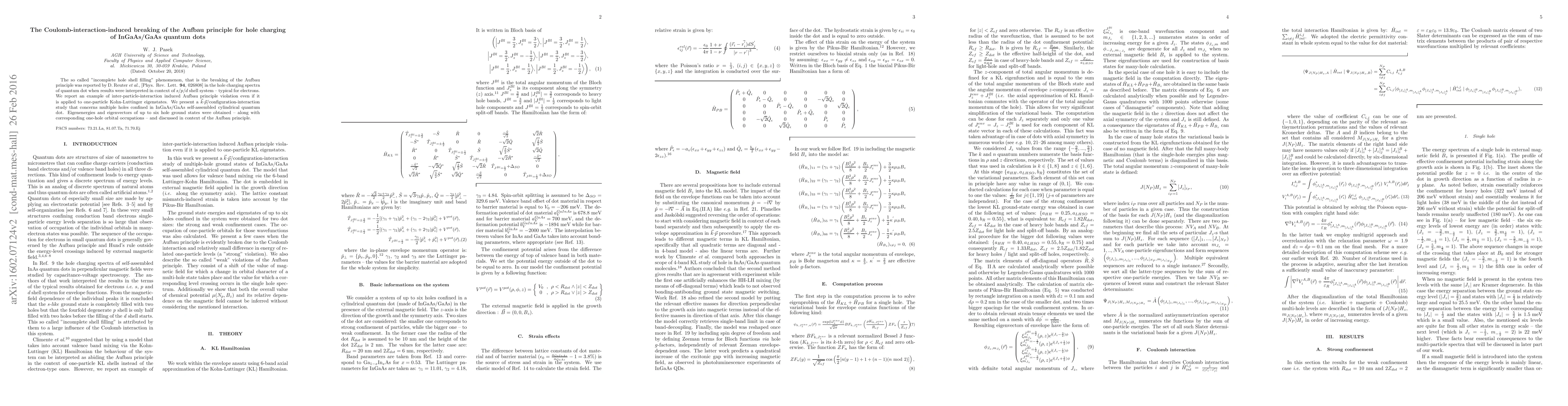This paper investigates the Coulomb-interaction-induced breaking of the Aufbau principle in hole charging of InGaAs/GaAs quantum dots, demonstrating "incomplete hole shell filling" through a k-dot-p/configuration-interaction study of multi-hole states. The findings reveal a violation of the Aufbau principle even when applied to one-particle Kohn-Luttinger eigenstates.