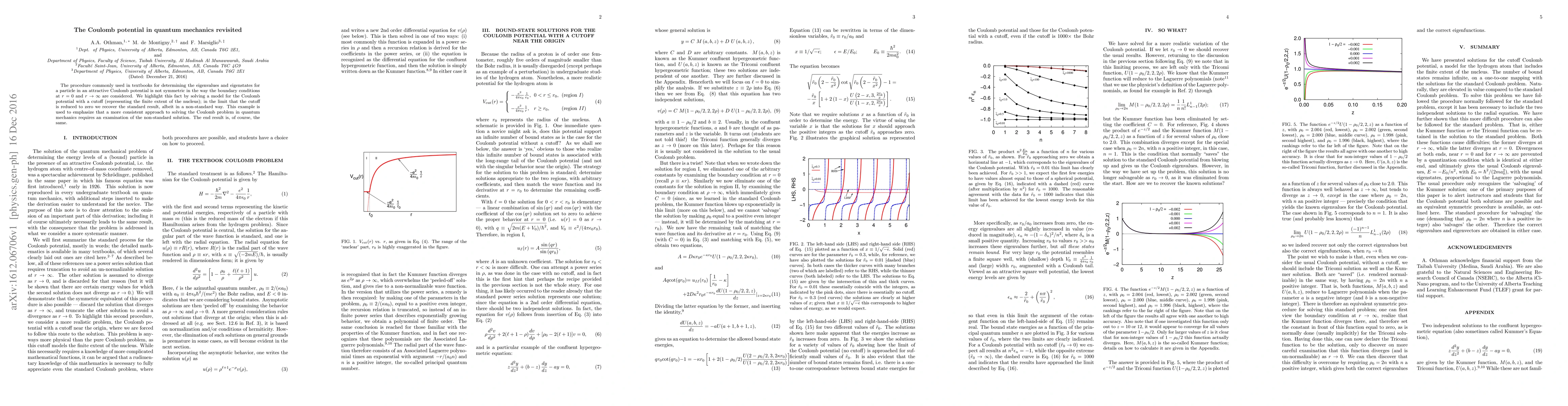 This paper revisits the standard method for solving the Coulomb potential in quantum mechanics, highlighting its asymmetry in boundary conditions. By introducing a cutoff and examining its limit, the authors demonstrate a more consistent approach to the problem, though the final results remain unchanged.