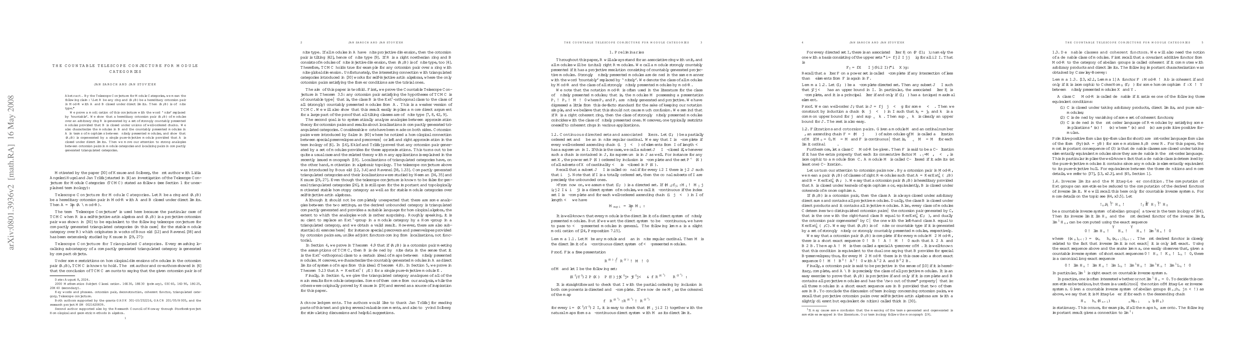 By the Telescope Conjecture for Module Categories, we mean the following claim: "Let R be any ring and (A, B) be a hereditary cotorsion pair in Mod-R with A and B closed under direct limits. Then (A, B) is of finite type." We prove a modification of this conjecture with the word 'finite' replaced by 'countable'. We show that a hereditary cotorsion pair (A, B) of modules over an arbitrary ring R is generated by a set of strongly countably presented modules provided that B is closed under unions of well-ordered chains. We also characterize the modules in B and the countably presented modules in A in terms of morphisms between finitely presented modules, and show that (A, B) is cogenerated by a single pure-injective module provided that A is closed under direct limits. Then we move our attention to strong analogies between cotorsion pairs in module categories and localizing pairs in compactly generated triangulated categories.