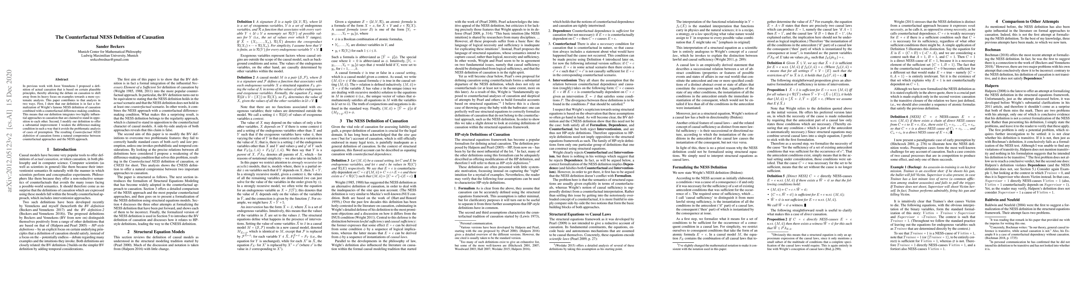 In previous work with Joost Vennekens I proposed a definition of actual causation that is based on certain plausible principles, thereby allowing the debate on causation to shift away from its heavy focus on examples towards a more systematic analysis. This paper contributes to that analysis in two ways. First, I show that our definition is in fact a formalization of Wright's famous NESS definition of causation combined with a counterfactual difference-making condition. This means that our definition integrates two highly influential approaches to causation that are claimed to stand in opposition to each other. Second, I modify our definition to offer a substantial improvement: I weaken the difference-making condition in such a way that it avoids the problematic analysis of cases of preemption. The resulting Counterfactual NESS definition of causation forms a natural compromise between counterfactual approaches and the NESS approach.