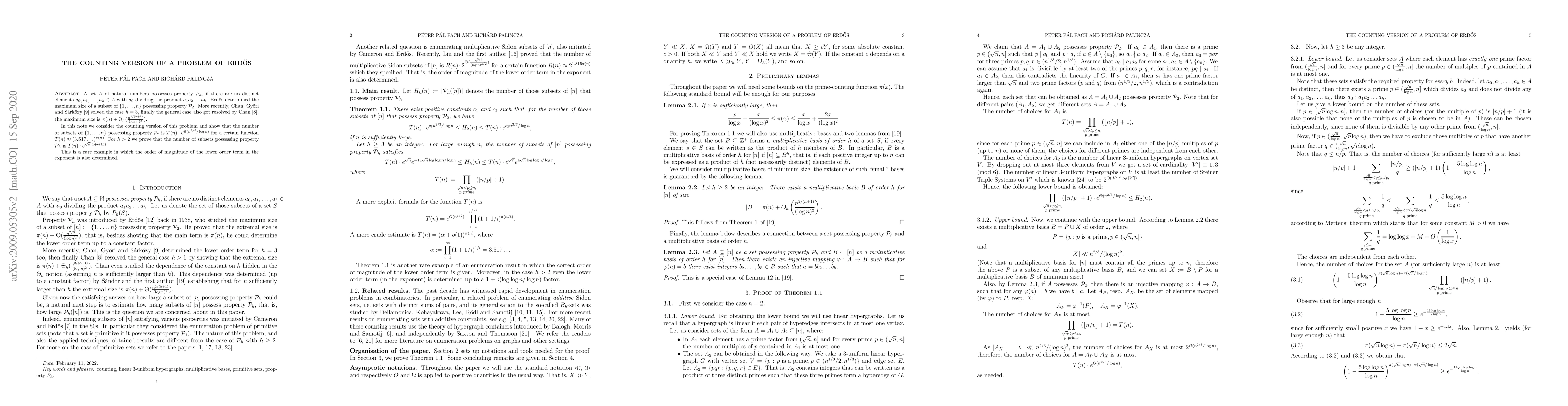This paper investigates the counting version of a problem concerning subsets of natural numbers with a specific divisibility property, (mathcal{P}_h). The researchers determine that the number of such subsets in ({1, ldots, n}) is approximately (T(n)cdot e^{Theta(n^{2/3}/log n)}), with (T(n)) being a function of (pi(n)). For (h > 2), they prove the number of subsets is (T(n)cdot e^{sqrt{n}(1+o(1))}). This work notably identifies the order of the lower-order term in the exponent.