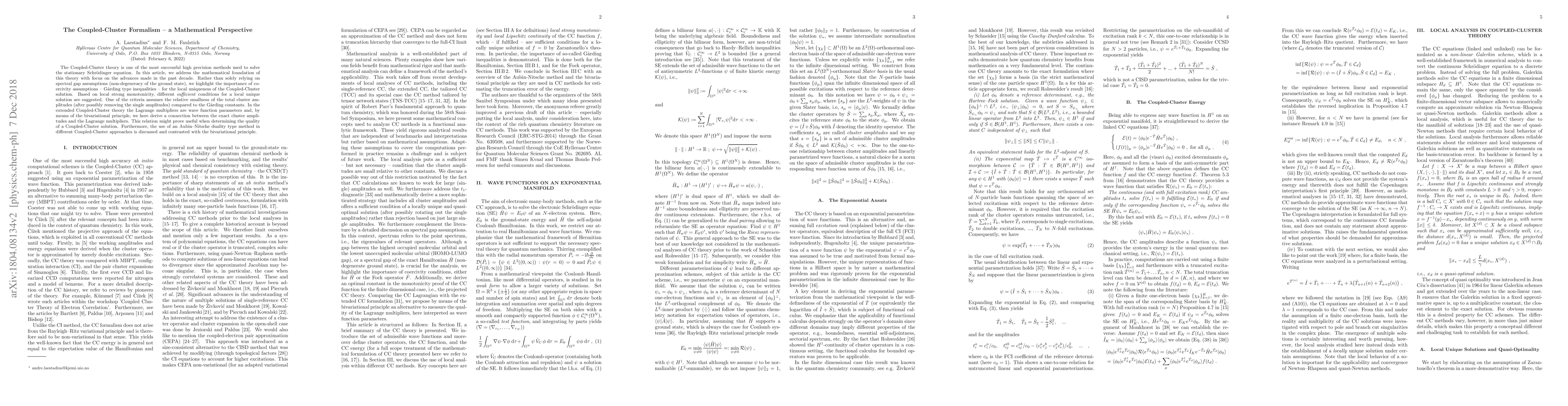 This paper explores the mathematical foundation of the Coupled-Cluster theory, emphasizing the importance of coercivity assumptions for local uniqueness over spectral gap assumptions. It introduces sufficient conditions for local unique solutions based on the relative smallness of cluster amplitudes and discusses the connection between exact cluster amplitudes and Lagrange multipliers via the bivariational principle.