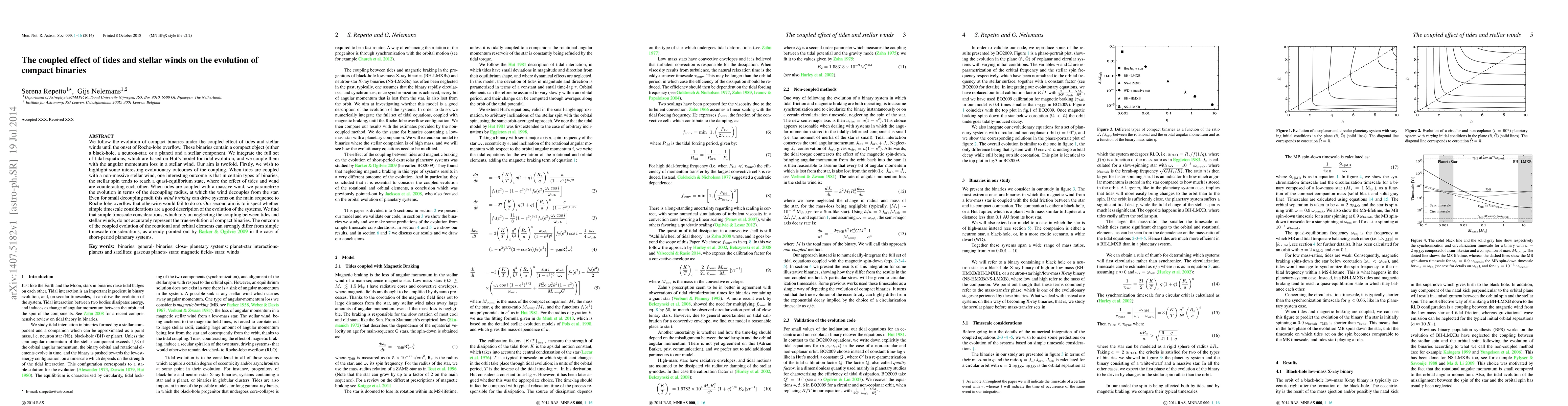 This paper investigates the evolution of compact binaries under the influence of tidal forces and stellar winds, finding that the coupling between these effects can lead to significant deviations from simple timescale models. The study highlights scenarios where stellar spin reaches a quasi-equilibrium, and where massive winds can drive systems to Roche-lobe overflow, challenging traditional evolutionary predictions.