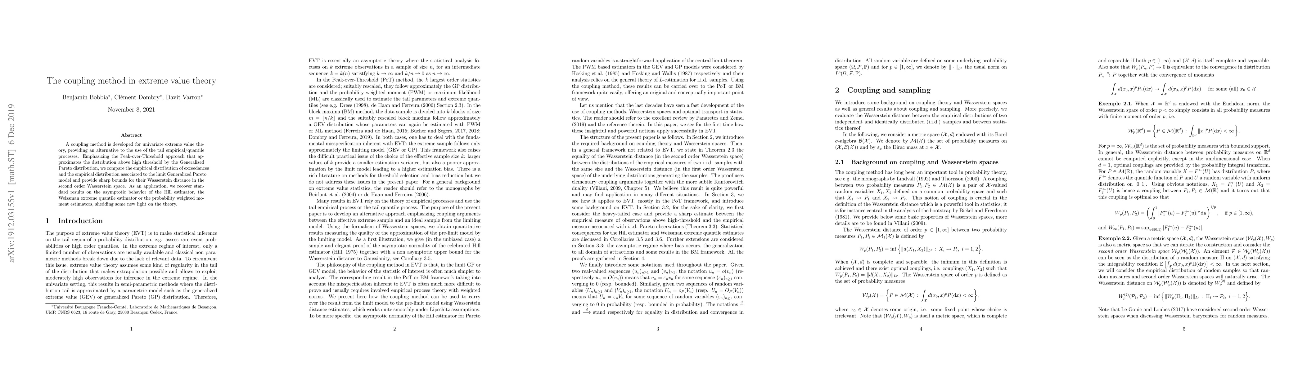 A coupling method is developed for univariate extreme value theory , providing an alternative to the use of the tail empirical/quantile processes. Emphasizing the Peak-over-Threshold approach that approximates the distribution above high threshold by the Generalized Pareto distribution, we compare the empirical distribution of exceedances and the empirical distribution associated to the limit Generalized Pareto model and provide sharp bounds for their Wasser-stein distance in the second order Wasserstein space. As an application , we recover standard results on the asymptotic behavior of the Hill estimator, the Weissman extreme quantile estimator or the probability weighted moment estimators, shedding some new light on the theory.