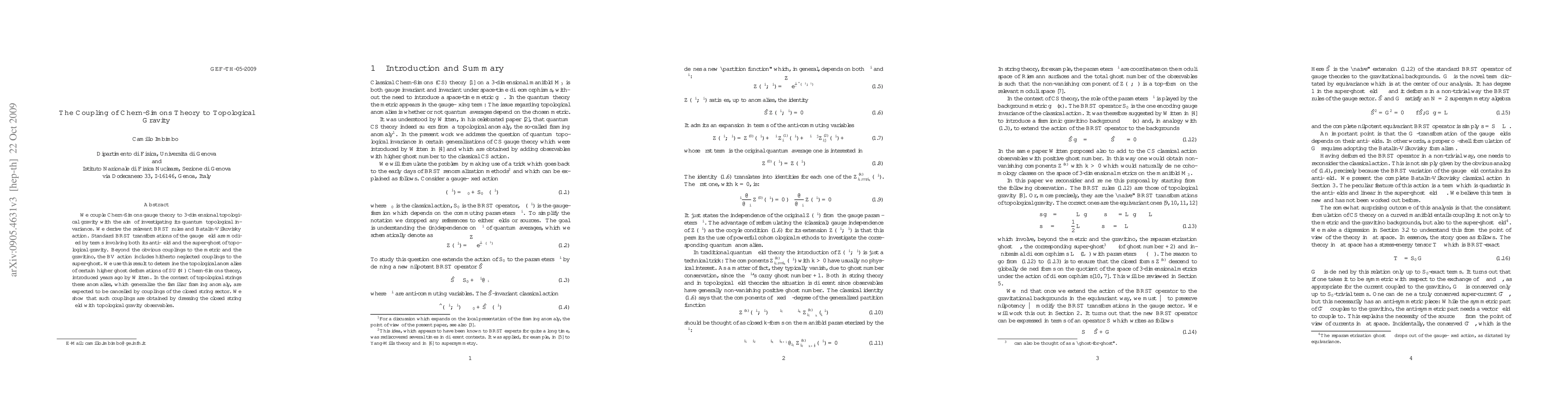 This paper investigates the quantum topological invariance of the coupling between Chern-Simons gauge theory and 3-dimensional topological gravity, deriving the BRST rules and Batalin-Vilkovisky action. It discovers new couplings involving the super-ghost and uses these results to determine topological anomalies in higher ghost deformations of SU(N) Chern-Simons theory, suggesting their cancellation by closed string sector couplings.