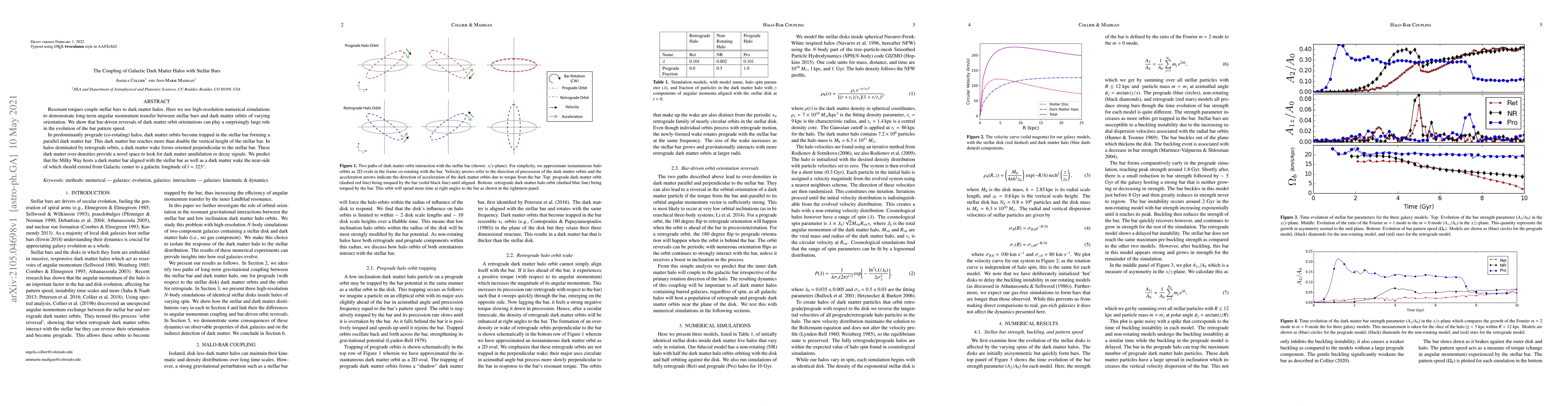 This paper demonstrates that resonant torques facilitate long-term angular momentum transfer between stellar bars and dark matter halos, influencing the evolution of bar pattern speeds. It predicts the presence of a dark matter bar and wake in the Milky Way, offering potential sites for dark matter annihilation or decay signals.
