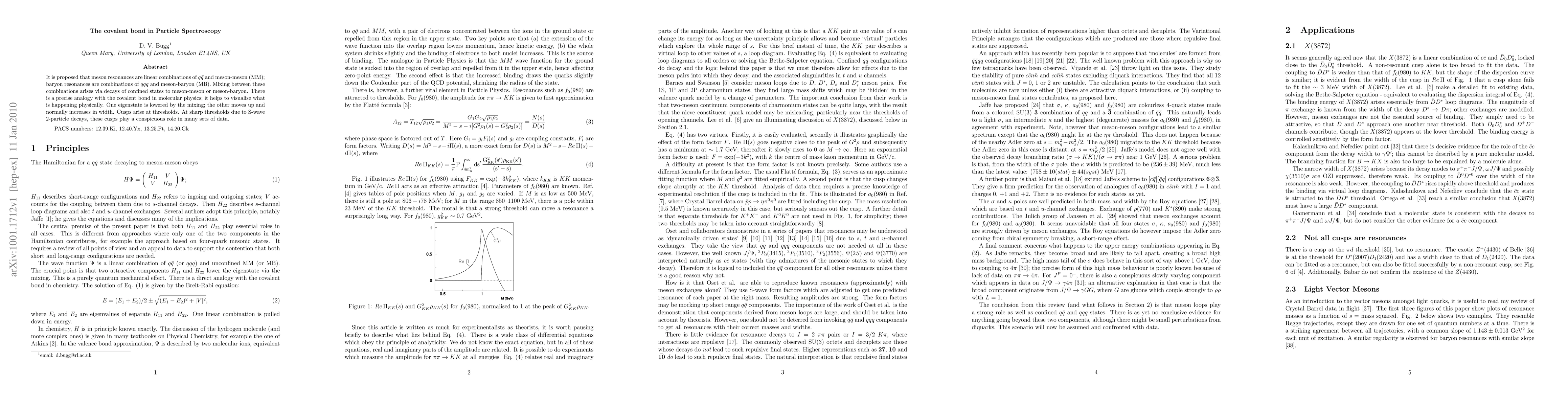 Researchers propose a covalent bond analogy to describe meson resonances and baryon resonances in particle spectroscopy, with mixing between combinations causing eigenstates to shift or increase in width.