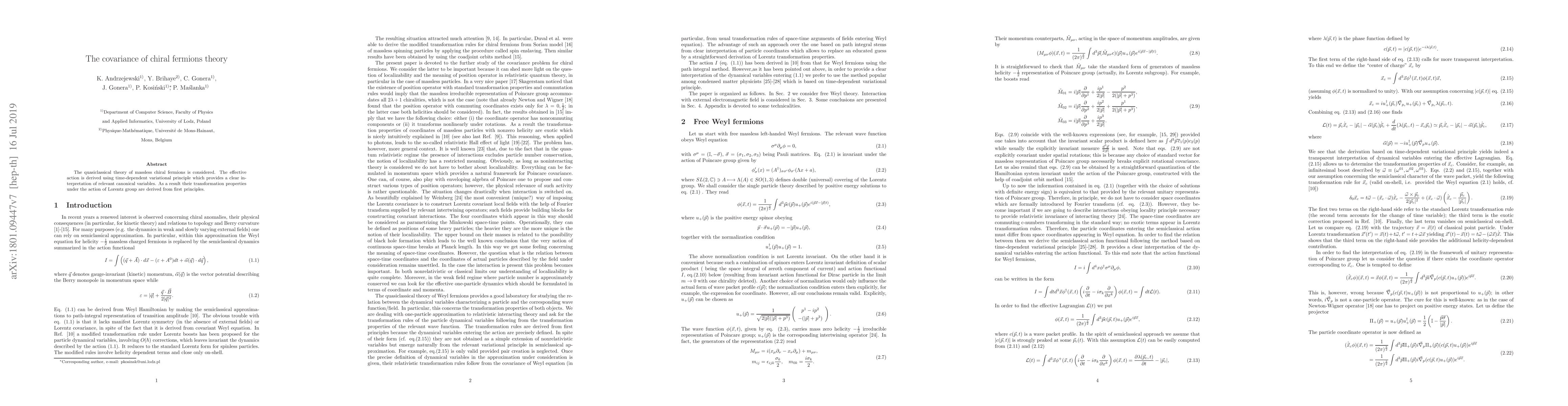 The quasiclassical theory of massless chiral fermions is considered. The effective action is derived using time-dependent variational principle which provides a clear interpretation of relevant canonical variables. As a result their transformation properties under the action of Lorentz group are derived from first principles.
