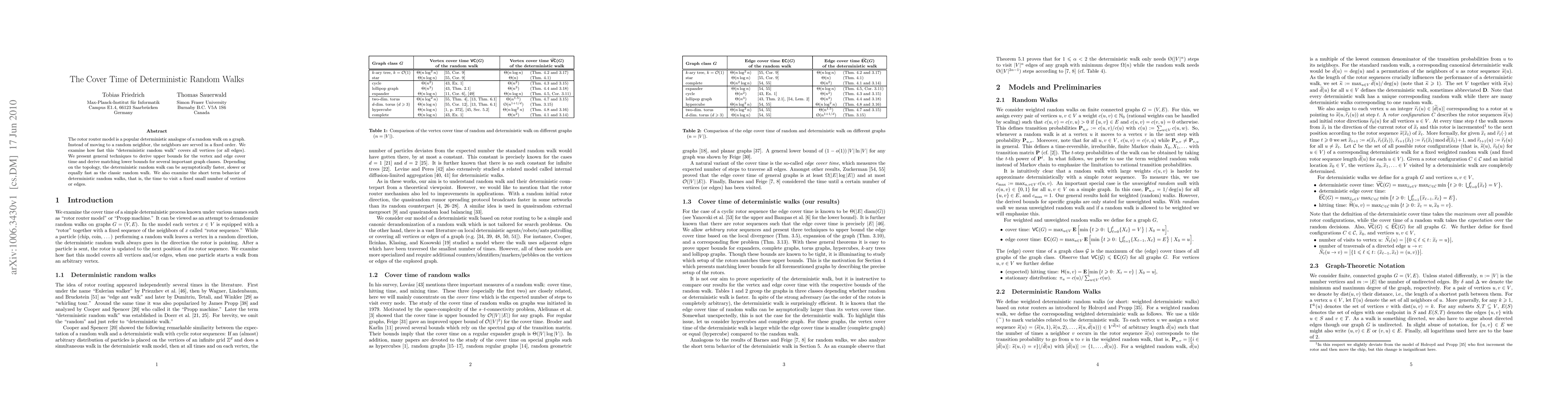 This paper investigates the cover time of deterministic random walks using the rotor router model, comparing its efficiency to that of classic random walks on various graph topologies. It develops techniques to derive both upper and matching lower bounds for cover times, revealing that the deterministic walk can outperform, lag behind, or match the classic random walk depending on the graph structure.
