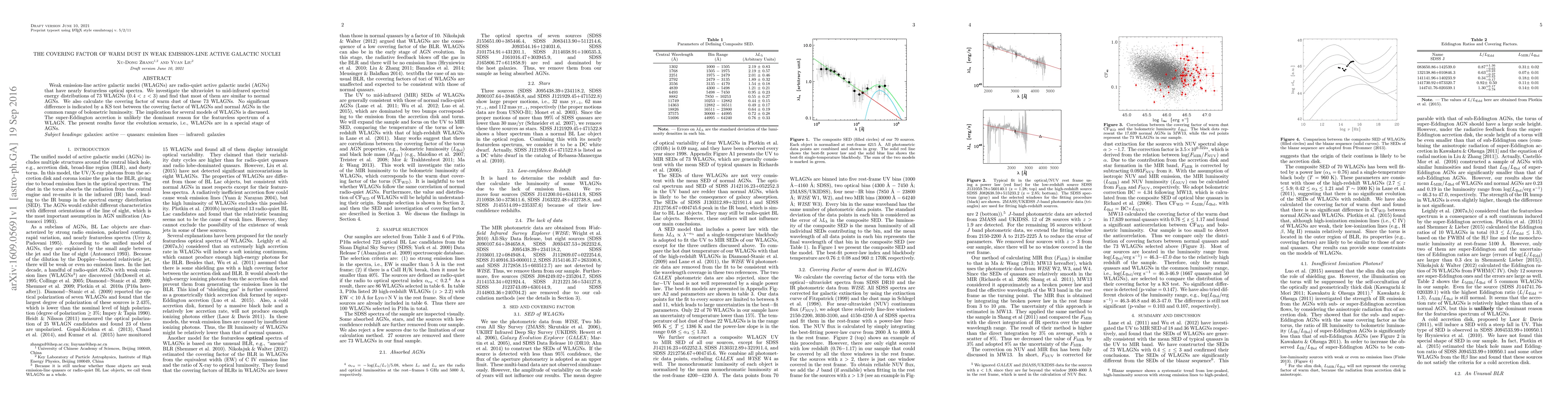 This study investigates the spectral energy distributions of 73 weak emission-line active galactic nuclei (WLAGNs) and finds their warm dust covering factors are similar to those of normal AGNs, suggesting WLAGNs may represent a special evolutionary stage rather than being driven by super-Eddington accretion.