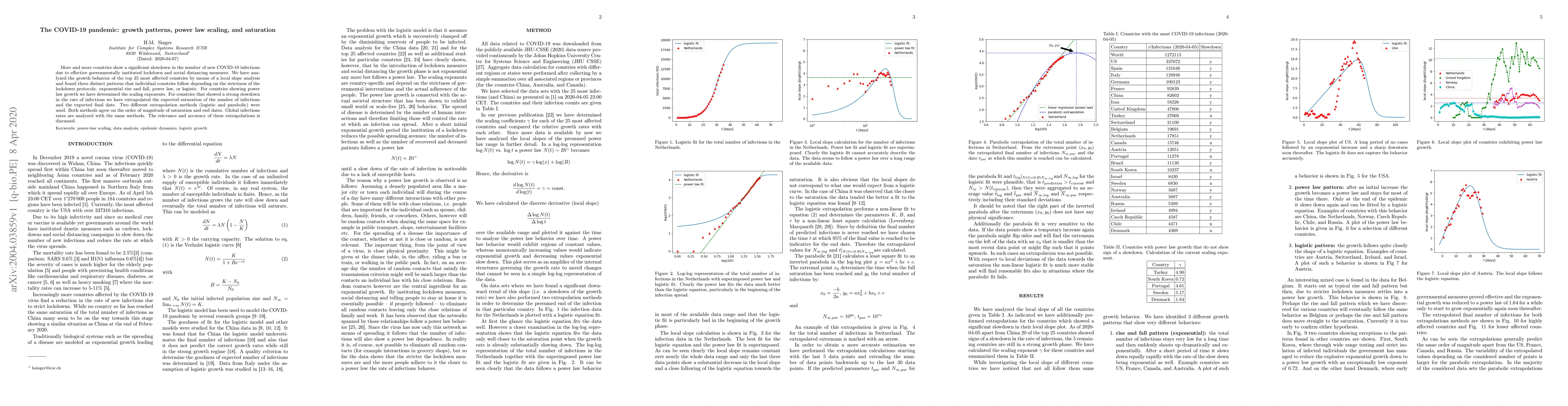 More and more countries show a significant slowdown in the number of new COVID-19 infections due to effective governmentally instituted lockdown and social distancing measures. We have analyzed the growth behavior of the top 25 most affected countries by means of a local slope analysis and found three distinct patterns that individual countries follow depending on the strictness of the lockdown protocols: exponential rise and fall, power law, or logistic. For countries showing power law growth we have determined the scaling exponents. For countries that showed a strong slowdown in the rate of infections we have extrapolated the expected saturation of the number of infections and the expected final date. Two different extrapolation methods (logistic and parabolic) were used. Both methods agree on the order of magnitude of saturation and end dates. Global infections rates are analyzed with the same methods. The relevance and accuracy of these extrapolations is discussed.