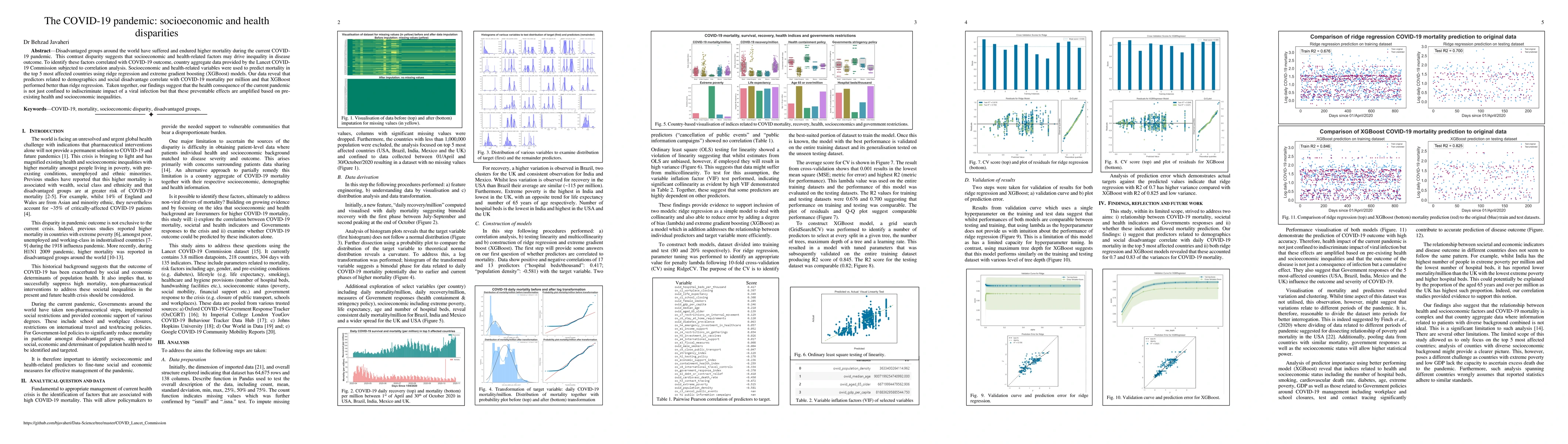 A study analyzing COVID-19 mortality rates found that socioeconomic and health disparities exacerbate the impact of the pandemic, particularly in disadvantaged groups. The analysis used regression models to identify factors driving mortality rates in top 5 most affected countries.