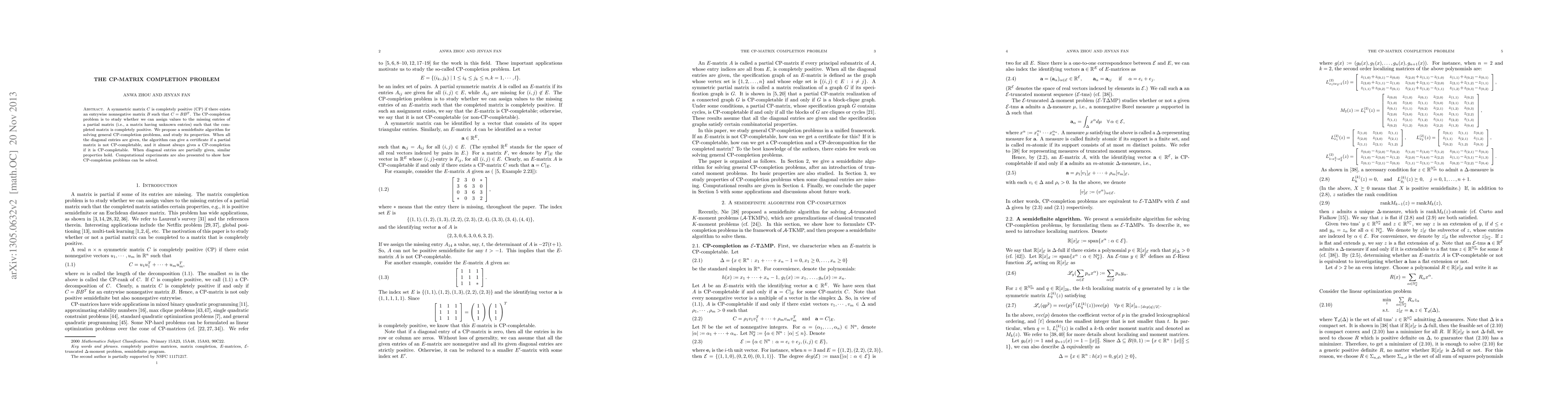 This paper proposes a semidefinite programming algorithm to solve the CP-matrix completion problem, determining if missing entries in a partial symmetric matrix can be filled to make it completely positive. The algorithm provides certificates for non-completable matrices and almost always finds a completion when possible.
