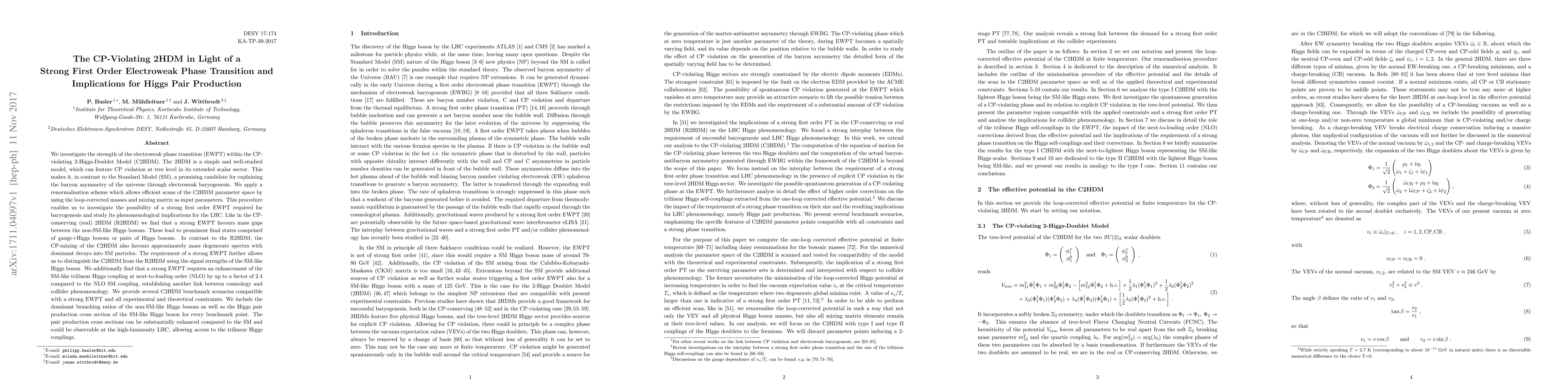 A strong first-order electroweak phase transition is required for baryogenesis in the CP-violating 2-Higgs-Doublet Model, leading to distinguishable phenomenological signatures at the LHC that could be used to test its validity.